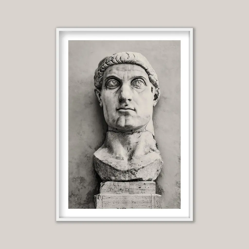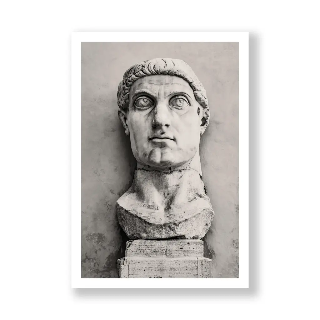 The striking, oversized sculpted head of Roman Emperor Constantine the Great radiates both power and elegance. Resting in the courtyard of the Capitoline Museum in Rome, this awe-inspiring masterpiece stands as a timeless testament to his monumental legacy. 19 3/4" x 27 1/2" - 50cm x 70cm (Includes border). Limited Edition of 25 - Signed. Signed by Maker