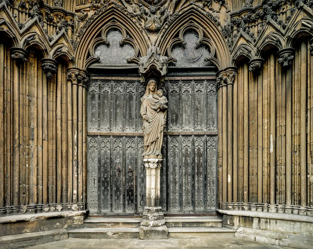 A classic architectural photograph of the Judgement Portal on the south side of Lincoln Cathedral, United Kingdom. Dating from the 11th century, the portal embodies a symbolic passage: the door to the left leading to hell, the door to the right, to heaven. Limited Edition Archival Inkjet Giclée Print on Matte Photo Rag Paper. 18" x 22" - 46cm x 56.5cm (Includes border). Limited Edition of 20 - Signed. Print only, no frame included. Signed by Maker
