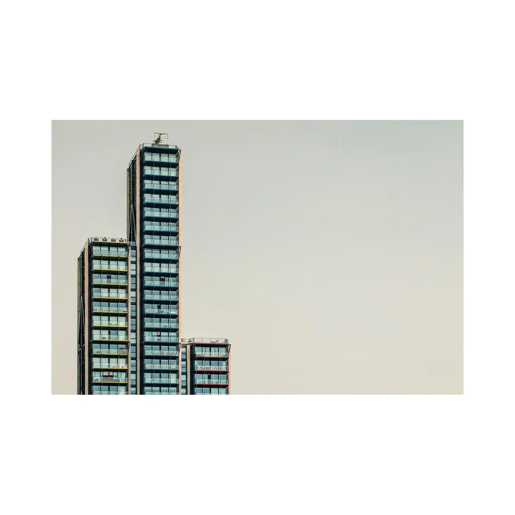 Merano, a tall residential building by RSHP Architects, stands along the River Thames in London, UK. Its bold design and riverside setting make it a distinctive addition to the city’s skyline. Limited Edition Archival Inkjet Giclée Print on Matte Photo Rag Paper. 19" x 26 3/4" - 48cm x 68cm (Includes border). Limited Edition of 20 - Signed. Signed by Maker