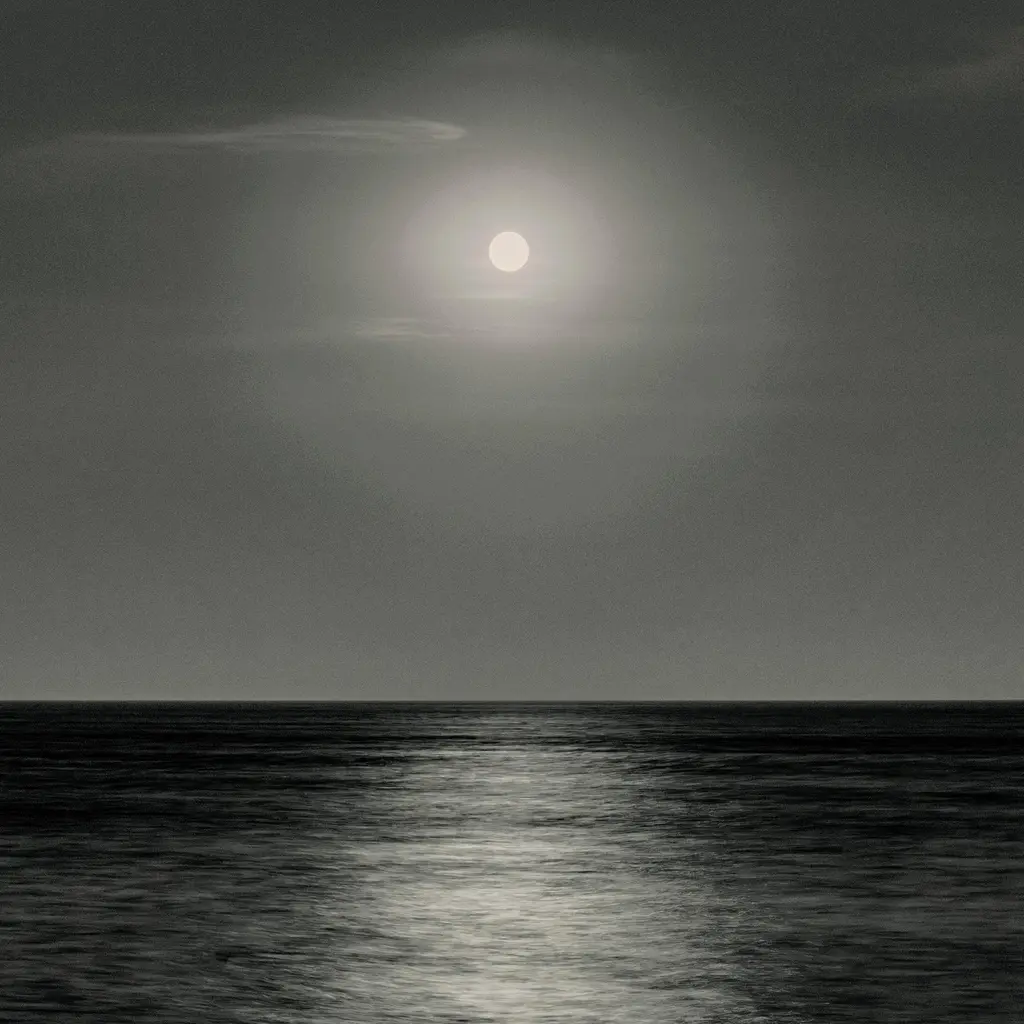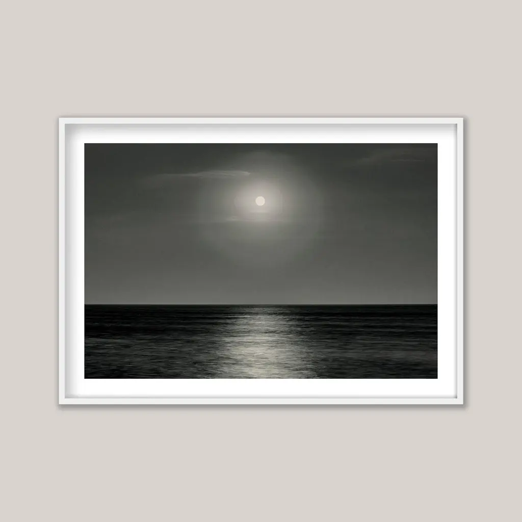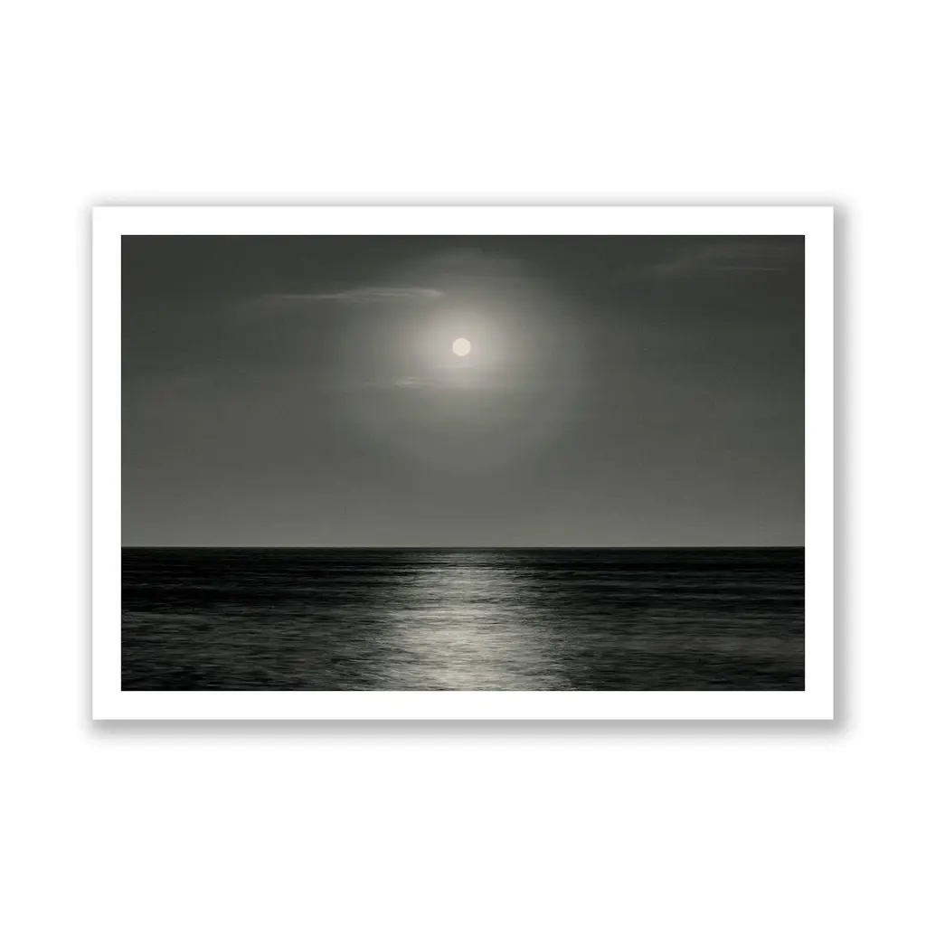 The Harvest Moon, September 2024. Shortly after rising, the moon appears vast and luminous, lifting slowly above the horizon along the southern coast of the UK. Its glow lingers over sea and land alike, a quiet spectacle marking the turning of the season. Limited Edition Archival Inkjet Giclée Print on Matte Photo Rag Paper. 19 3/4" x 27 1/2" - 48cm x 68cm (Includes border). Limited Edition of 20 - Signed. Print only, no frame included. Signed by Maker