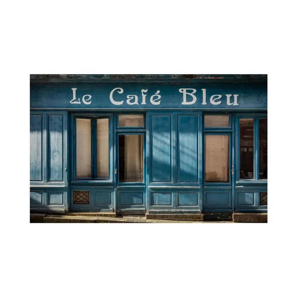 A photograph of the façade of Le Café Bleu, a charming vintage café in northwestern France. Now closed and left untouched, its beautifully aged frontage stands as a quiet testament to its past. Deep blue paint, worn yet elegant, frames a hand-painted sign in a nostalgic typeface, evoking an era long gone. The letter “C,” with its distinctive curve, recalls the vintage Coca-Cola logo, adding to its timeless appeal - simple, classic, and effortlessly beautiful. Limited Edition Archival Inkjet Giclée Print on Matte Photo Rag Paper. 18" x 27 1/2" - 46cm x 70cm (Includes border). Limited Edition of 30 - Signed. Print only, no frame included. Signed by Maker