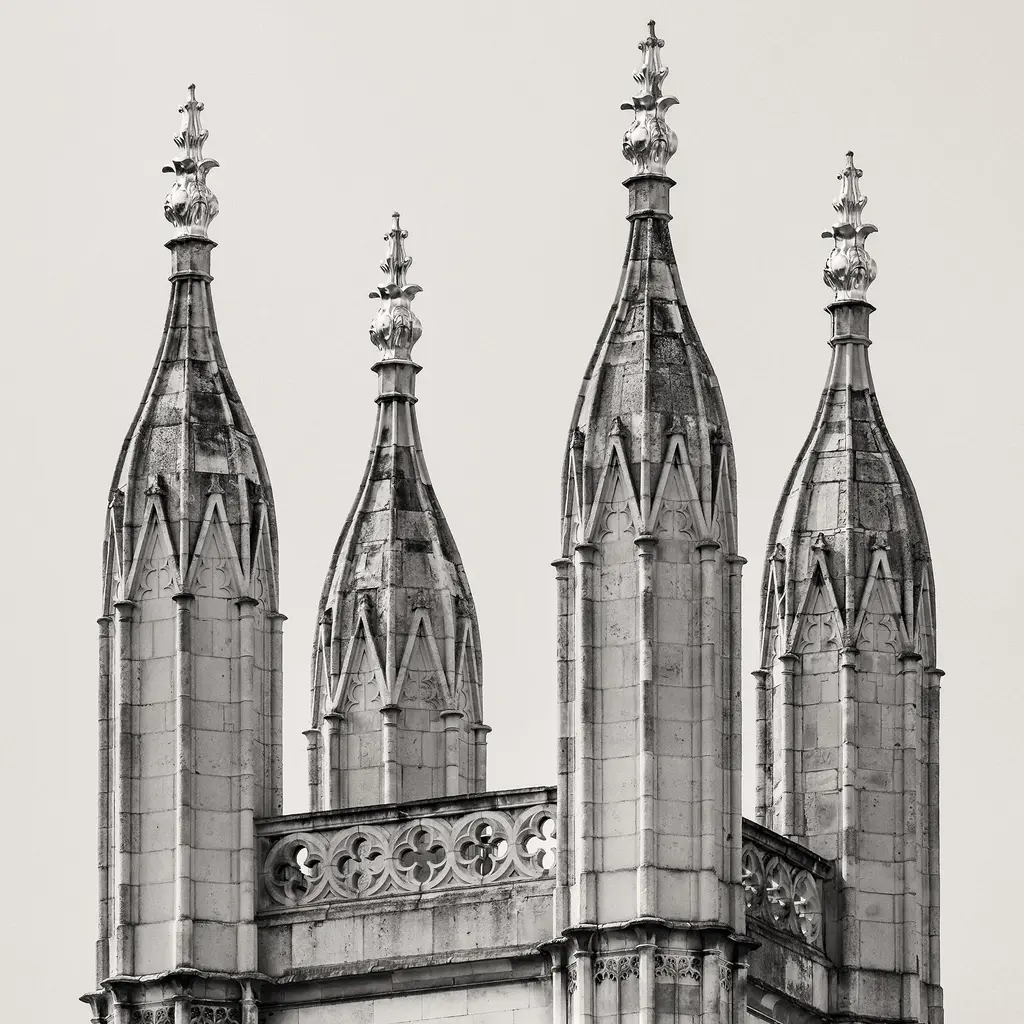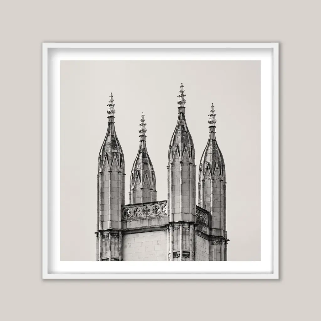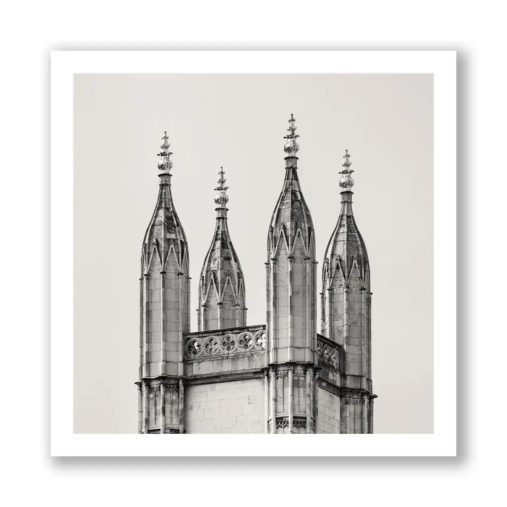 Tower Hill, London. A sepia-toned black-and-white photograph capturing the intricate architectural details of a classic Neo-Gothic building in Tower Hill, in the historic heart of the City of London. The image invites reflection on the enduring presence of Victorian grandeur amid the city’s evolving skyline. Limited Edition Archival Inkjet Giclée Print on Matte Photo Rag Paper. 18" x 18" - 46cm x 46cm (Includes border). Limited Edition of 20 - Signed. Print only, no frame included. Signed by Maker