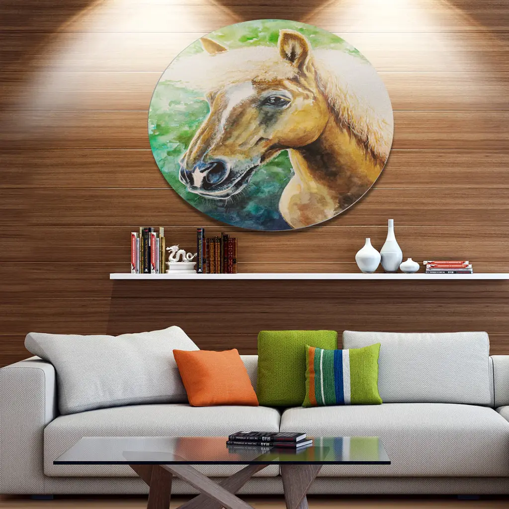 Bring Contemporary Abstraction to your home with this large Circle Metal wall art. This Large Hafliner Horse Metal Artwork makes it the focal point of any room or office. - White Gloss Coating ensures colors are extra vibrant with light reflection.- Aluminum grade Sheet Metal with 1 inch mounting frame on the back giving the illusion that the artwork is floating on the wall..- Mounting Brackets are included along with instructions.- High Quality Digital images are created directly into a glossy aluminum panel producing a stunning and captivating print into the glossy finish of the metal.- Water, Fire and Scratch resistant HD Aluminum panels.- Looks better than any photo paper and guaranteed to last at least 20 years- Easy to clean with a microfiber cloth. Colors are far superior to regular Canvas Art. - Easy to Hang