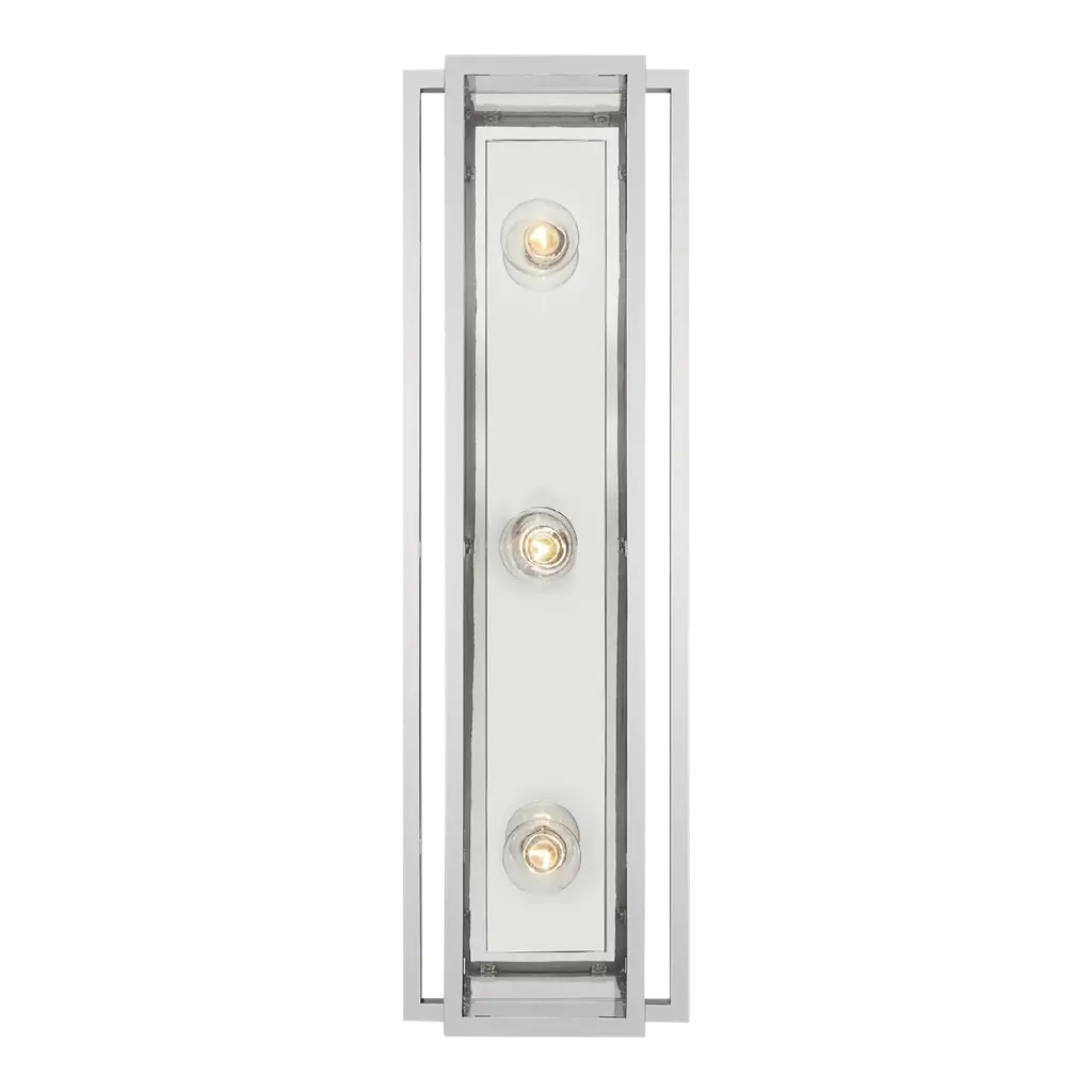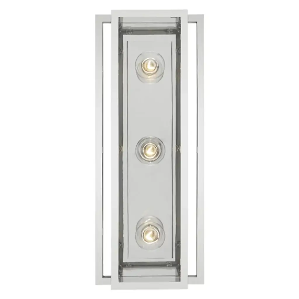 Designed by Ian K. Fowler for Visual Comfort Signature, formerly known as Visual Comfort,, the Halle Vanity Light is a transitional piece of lighting with mid-century modern influences. Ian is a designer known for bridging elegance and function together with a modern edge, and the Halle Vanity Light is a perfect example of that style in play. Evoking the look of an abstract stoplight, each of the clear glass shades allows illumination to flow through freely. Composed of brass and finished luxuriously, the Halle is a fine choice for all interiors, including bathrooms and outdoor locales protected from the elements.