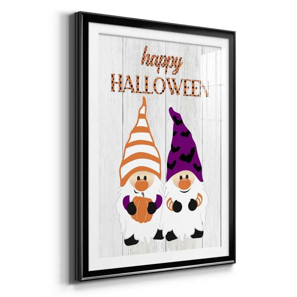 Halloween Gnomes Premium Framed Print - Ready to Hang A Premium Framed Print created to last. Framed in distressed wood and available in an array of sizes and colors Featuring a beveled a solid wood stretcher bar, each piece comes ready to hand 4 SIZES AVAILABLE 30.5''X42.5'' - Overall Size 26.5'X36.5'' - Overall Size 22.5''x30.5'' - Overall Size 18.5''x24.5'' - Overall Size Each piece is made to order. Each piece comes with hanging hardware. Made in the USA Ready to Hang Giclee Paper Print Acrylic Glass Beveled Matt Board