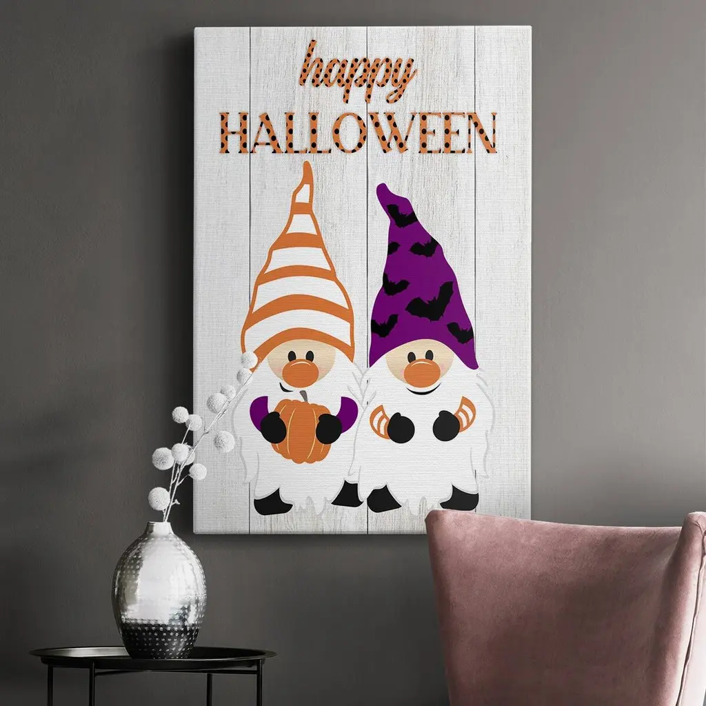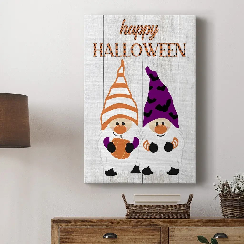 Halloween Gnomes Premium Gallery Wrapped Canvas - Ready to Hang A premium hand stretched gallery wrapped canvas print created to last. Featuring a beveled a solid wood stretcher bar, each piece comes ready to hand 6 SIZES AVAILABLE 8''X12'' - Overall Size 12''X18'' - Overall Size 18''X27'' - Overall Size 24''x36'' - Overall Size 32''x48'' - Overall Size 40''x60'' - Overall Size Each piece is made to order. Built to Last Each piece comes ready to hang Solid wood stretcher Fade and Water resistant Made domestically