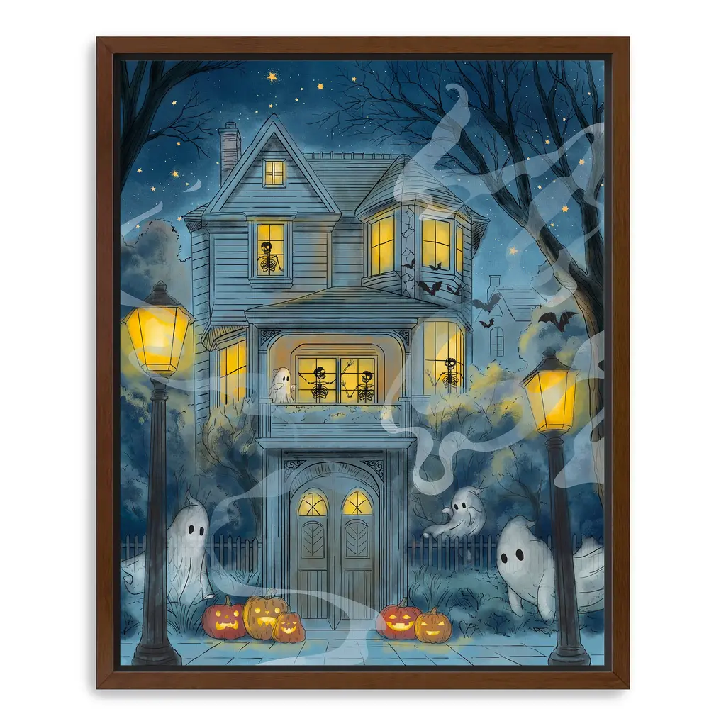 Halloween In Town Canvas Giclee - Framed / Oak / 24x30