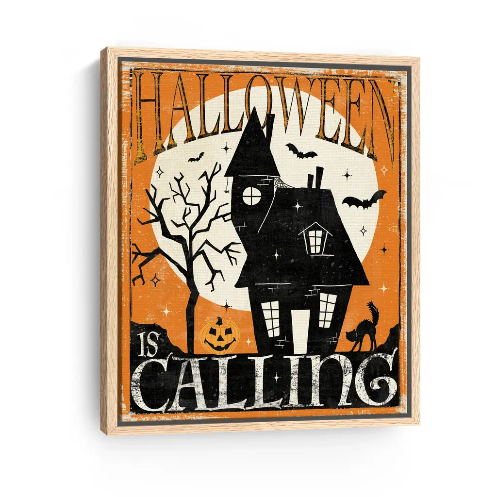 Halloween Is Calling Iii Light Canvas Giclee - Framed / Oak / 16x20