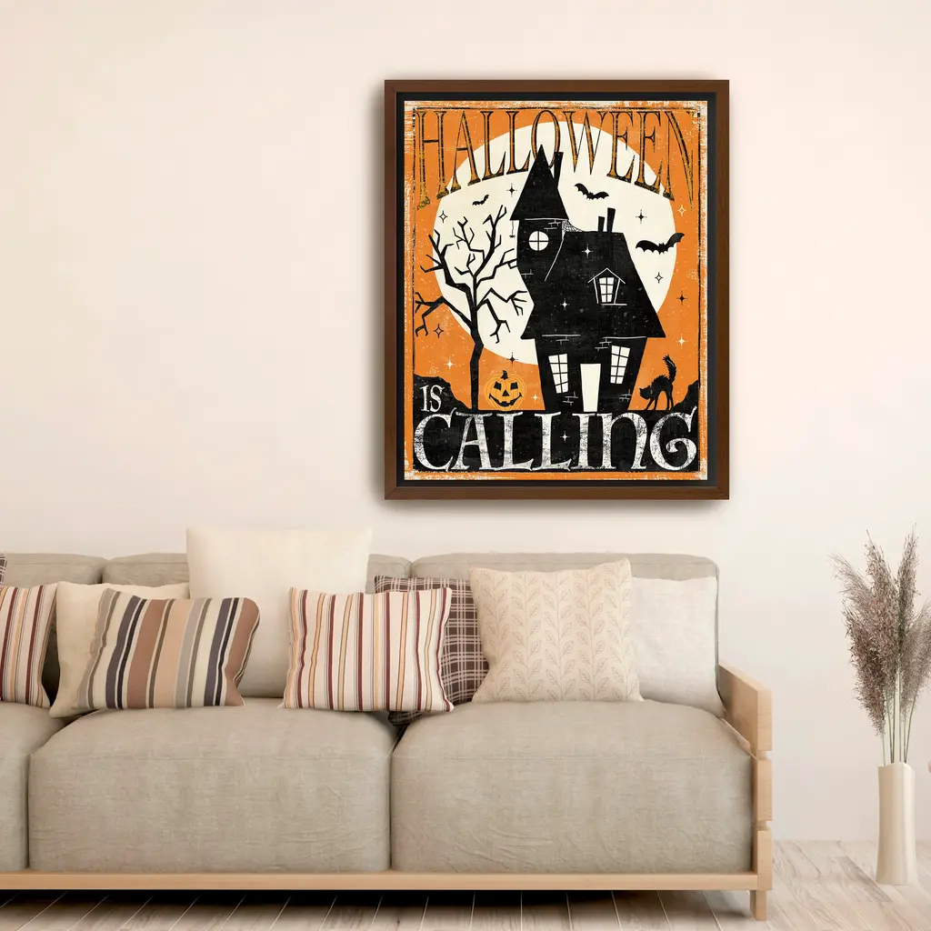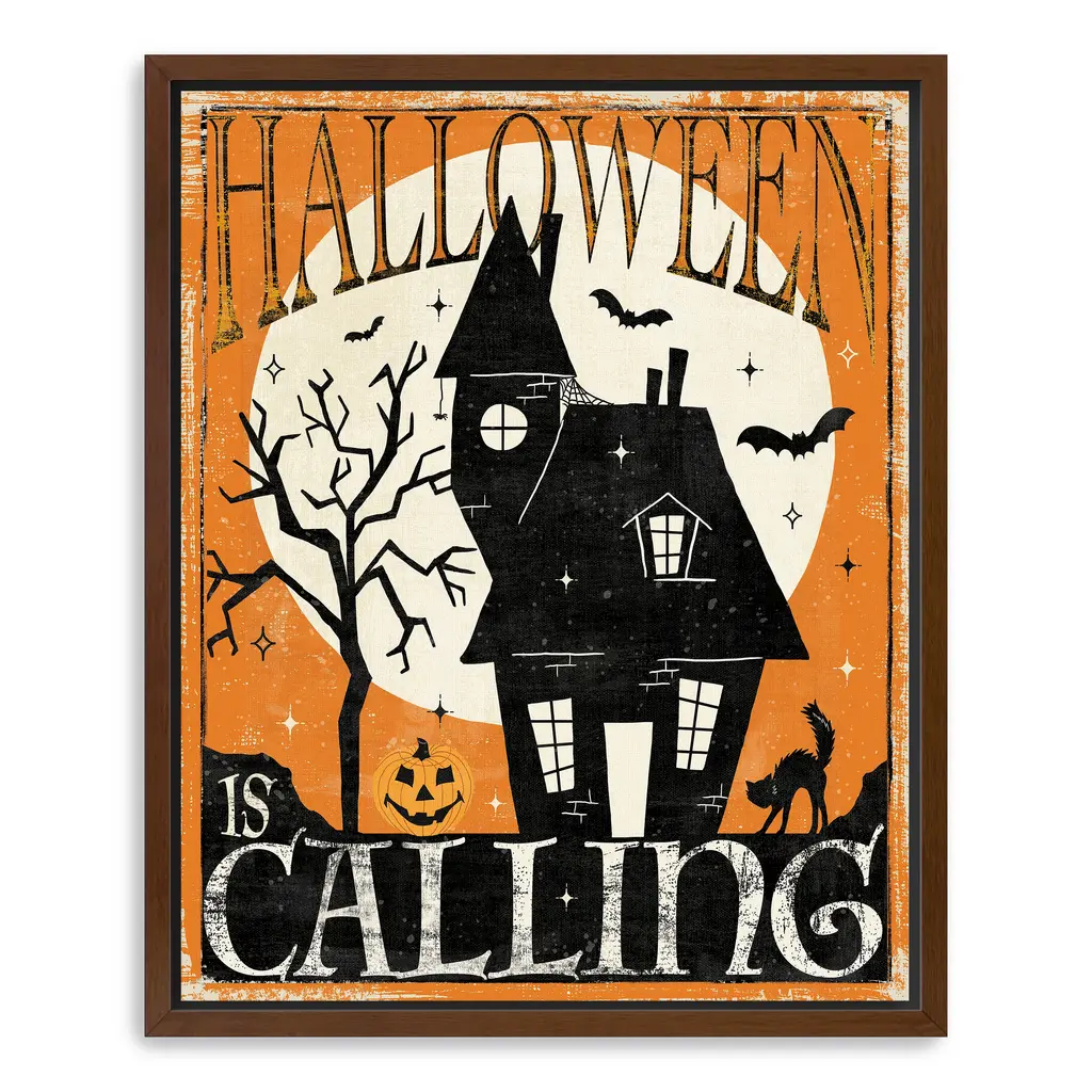 Halloween Is Calling Iii Light Canvas Giclee - Framed / Oak / 24x30