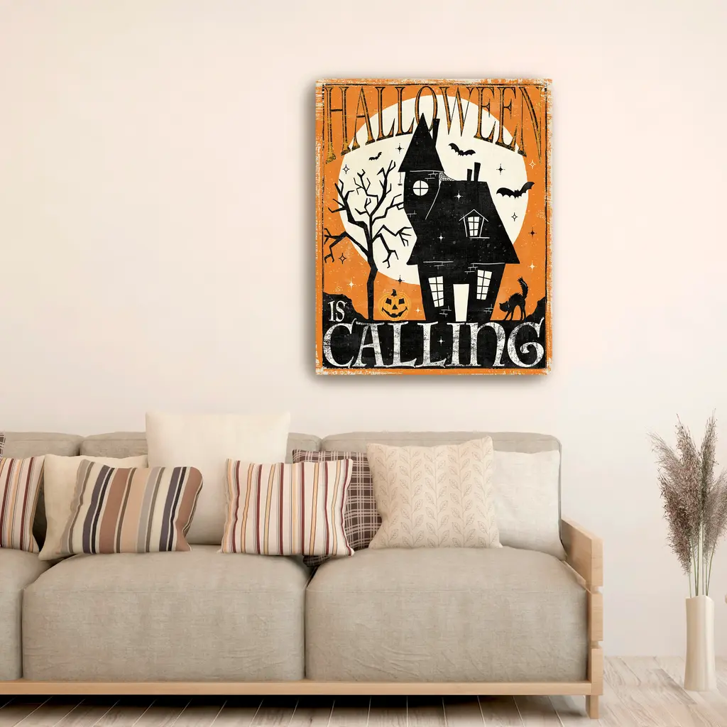 Bold, eerie lettering spells out Halloween's darkest delights. Each twist of the font conjures haunted houses, moonlit magic, and creeping shadows. Our Gallery Wrap Canvas Prints are proudly assembled with high quality materials in California, USA. Each piece is printed on a thick, archival grade canvas using Giclee technology. It is then hand-stretched by our experienced artisans over solid wood bars, which will not warp over time. The final product is a piece personally crafted for you to confidently display on your wall. Care and Assembly: Ensure that the location of your piece has little to no exposure to heat, sunlight, and moisture. Wipe clean, only if needed. Each piece includes a sawtooth hanger to hang on your wall vertically.