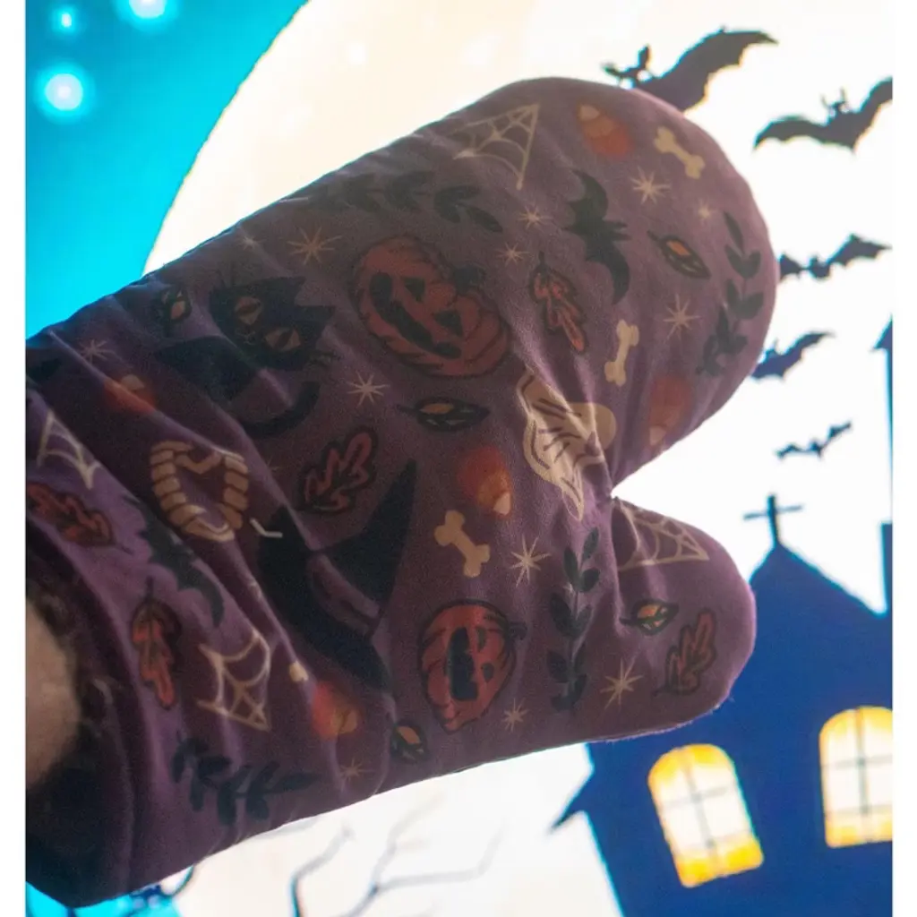Halloween Oven Mitt Cute Festive Jack-o-lantern Scary Candy Corn Kitchen Glove - Crazy Dog Bakeware For Halloween Season Purple Oven Mitt