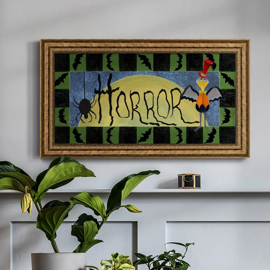 Halloween Trick Or Treaters Collection D Premium Framed Canvas- Ready To Hang - 18x34 - Pewter
