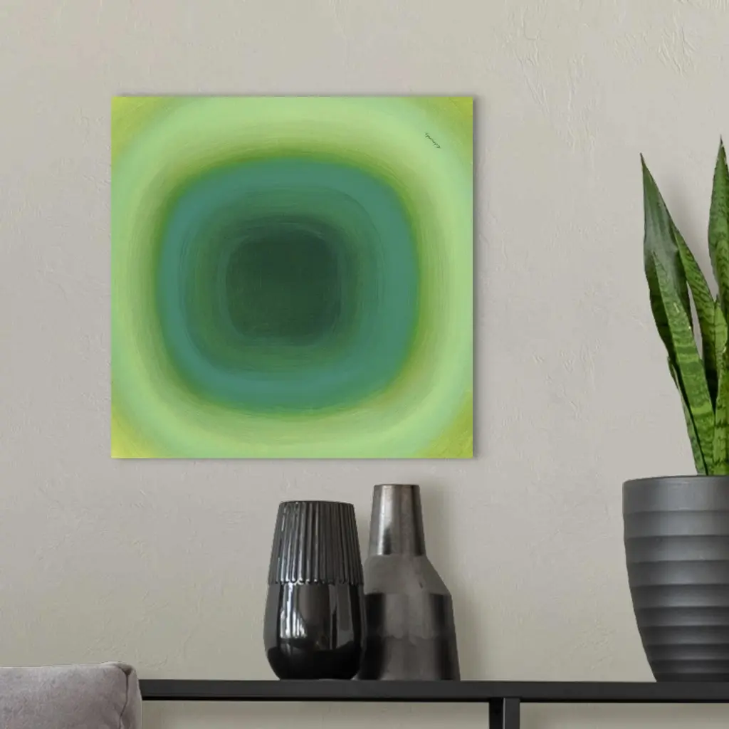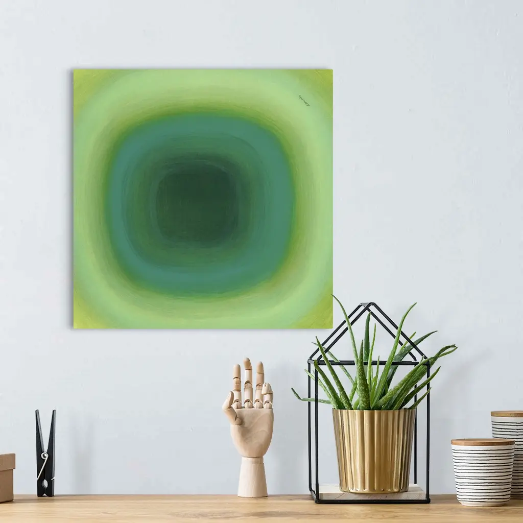 A contemporary abstract painting of a green circle with gradating green circles moving concentrically outward.