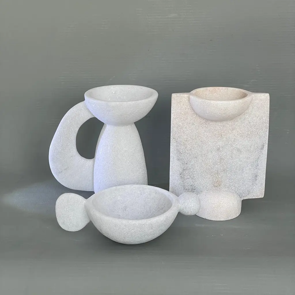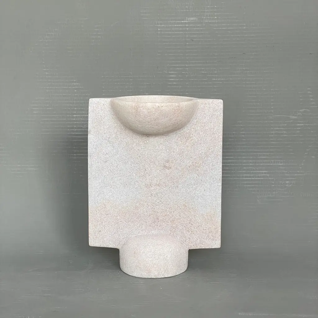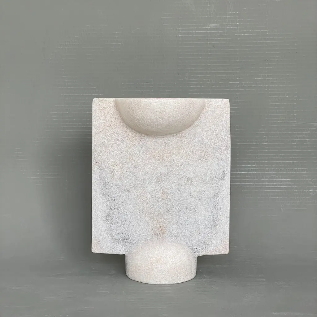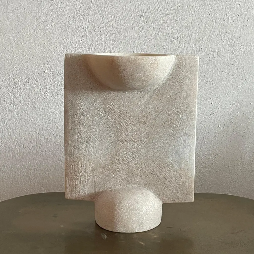 Hand Carved marble vessel by Tom Von KaenelMaterials: MarbleDimensions: W12.5 x D20 x H26 cmTom von Kaenel, sculptor and painter, was born in Switzerland in 1961. Already in his earlychildhood he was deeply devoted to art. His desire to bring beauty to the world is Tom vonKaenel’s inspiration, drive and source for the creation of his works.Already during his training as a technical draughtsman and later as a teacher of pictorial design, he devoted himself to painting and three-dimensional work. Tom von Kaenel has exhibited his work in various solo and group exhibitions. For seven years he was represented by Galerie Ute Barth in Zurich.Today Tom von Kaenel lives and works on the island of Naxos. Everything in his environment inspires and shapes his work. He creates objects and sculptures out of Naxian marble in craftsmanship liveliness and timeless beauty.