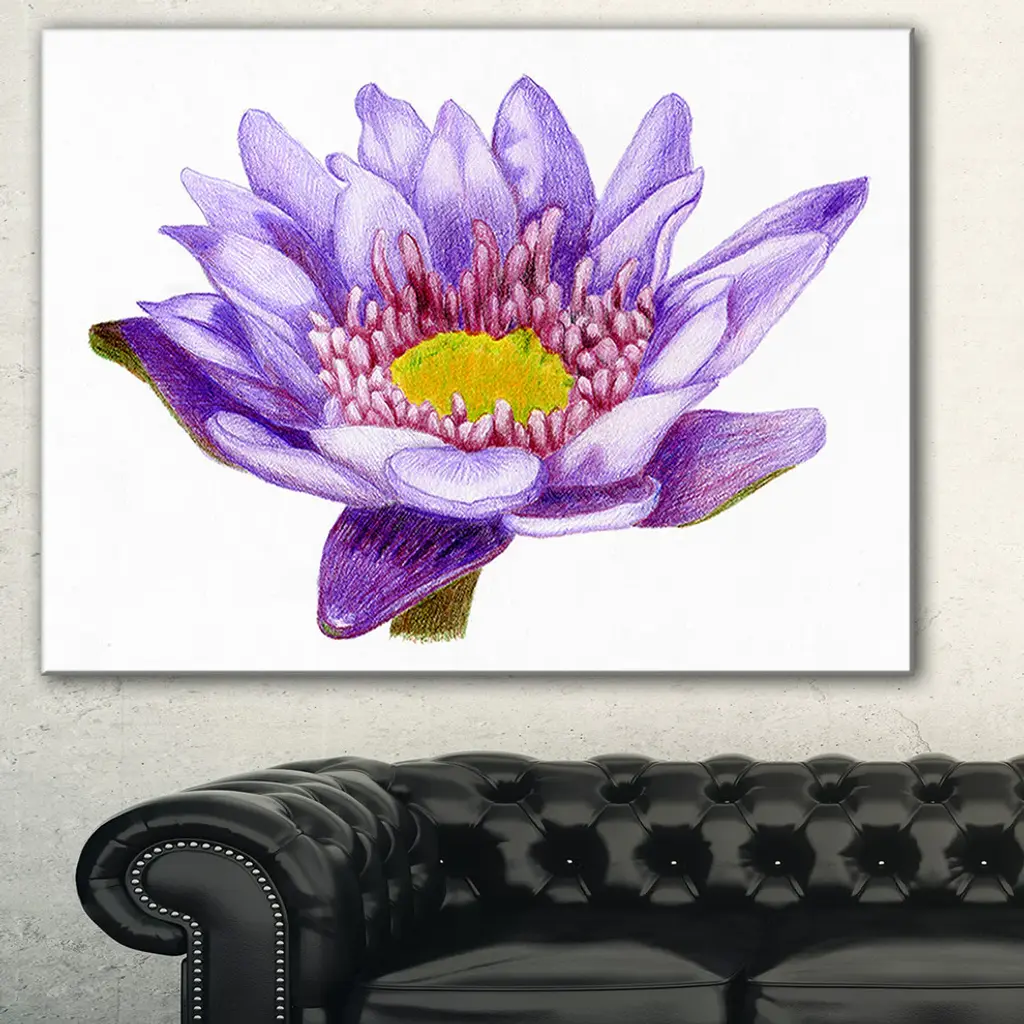 The Hand-drawn Purple Lotus canvas art print is sure to make an impression on anyone who sees it. This artwork is gallery wrapped around a 1-inch solid wood frame and arrives carefully packaged and entirely ready to hang on the wall. Design Art only uses the highest resolution and pigments to ensure a crisp colorful print that is never faded or pixelated. This artwork is sure to be a conversation starter in any home or office.
