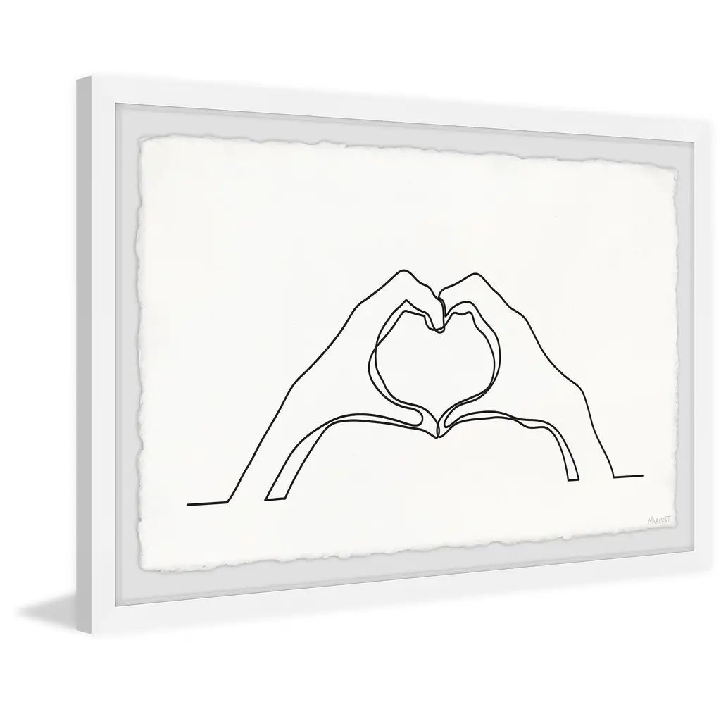 Ideal for bringing love into your space or gifting to a loved one, this black and white print features two hands coming together to form a heart shape. Proudly printed in the USA, this piece is printed on high quality archive paper and professionally hand-framed. With wall-mounting hooks included, this artful accent is ready to hang up as soon as it reaches your front door. • Top quality Giclee print on high resolution Archive Paper • Hand cut deckled edges • High quality durable non-warping frame • Finished under shatter resistant plexiglass • Arrives ready to hang • Includes a certificate of authenticity • Printed in the USA