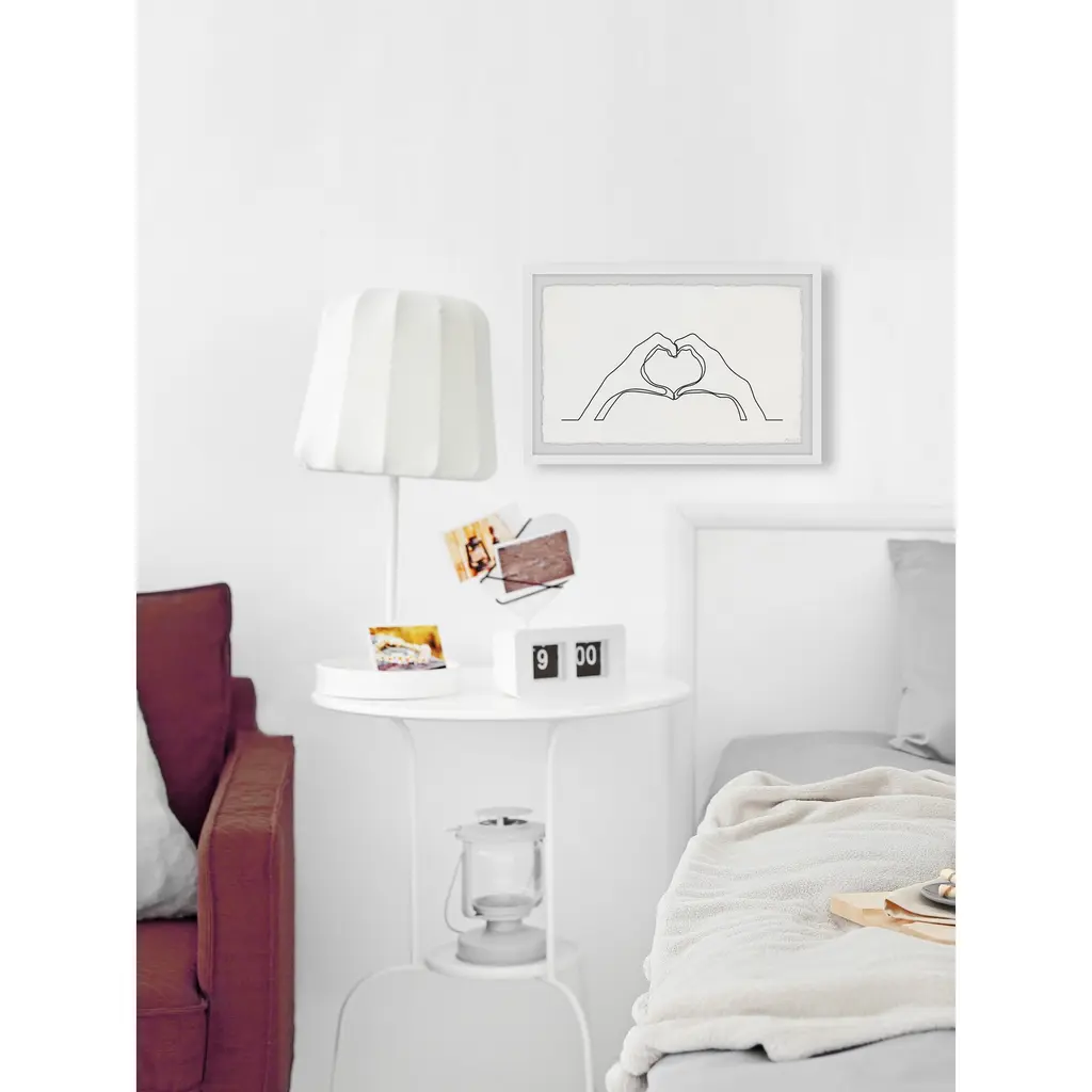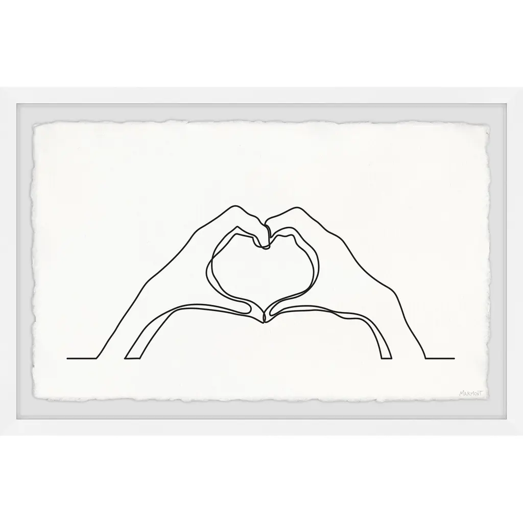 Ideal for bringing love into your space or gifting to a loved one, this black and white print features two hands coming together to form a heart shape. Proudly printed in the USA, this piece is printed on high quality archive paper and professionally hand-framed. With wall-mounting hooks included, this artful accent is ready to hang up as soon as it reaches your front door. • Top quality Giclee print on high resolution Archive Paper • Hand cut deckled edges • High quality durable non-warping frame • Finished under shatter resistant plexiglass • Arrives ready to hang • Includes a certificate of authenticity • Printed in the USA