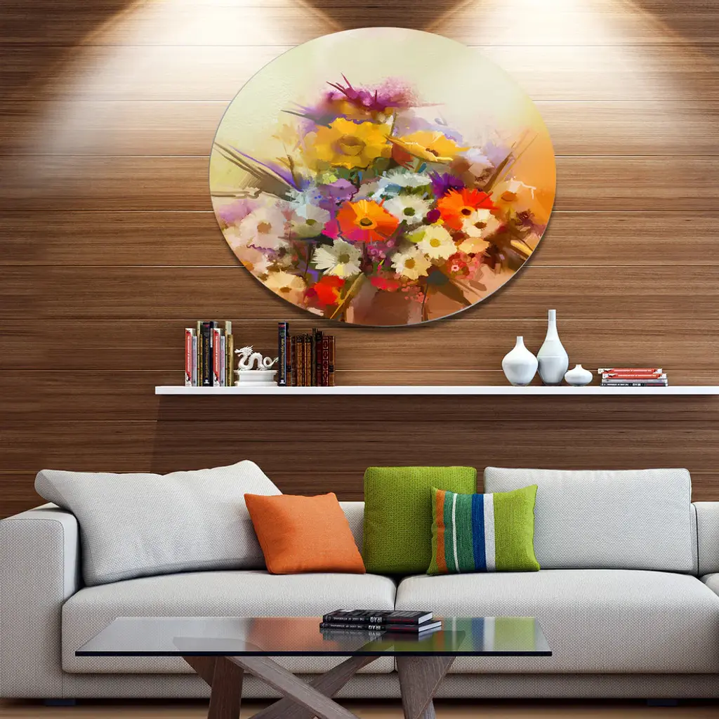 Hand-Painted Bouquet Of Flowers, Modern Floral Round Wall Art, 23"