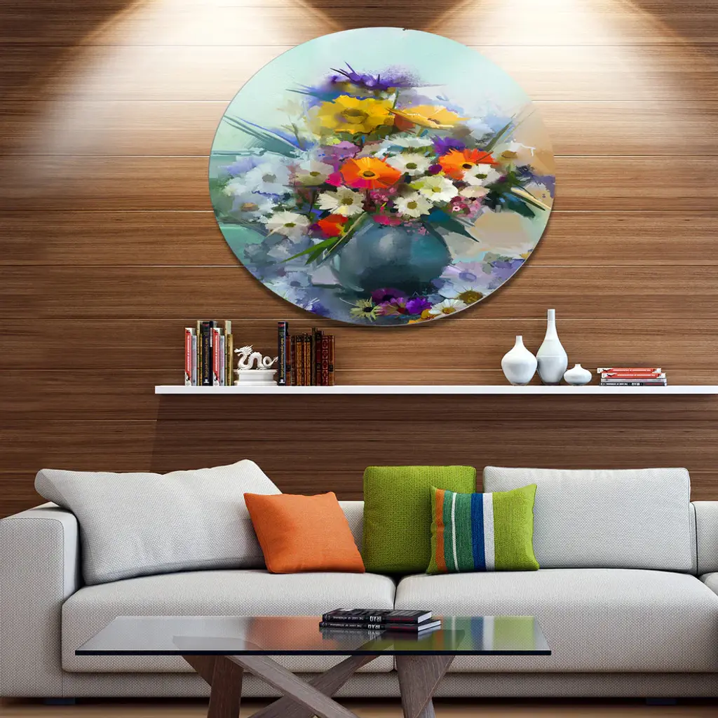 Hand-Painted Bunch Of Small Flowers, Floral Disc Metal Wall Art, 38"