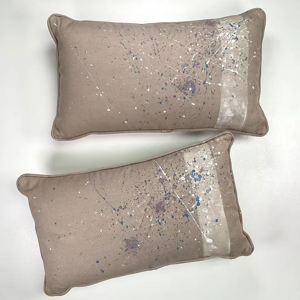 Hand-Painted Rectangular Taupe Cushion