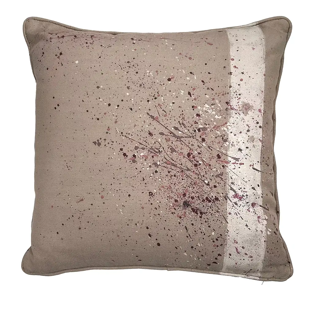Reminiscent of an contemporary-style painting, this soft polyester-padded cushion is a singular piece master artisans deftly crafted in Como. The removable taupe-toned cover - obtained from 67% cotton, 22% viscose, and 11% linen - welcomes an array of casual polychrome spurts and speckles also superimposing the wide yet delicate brushstroke on the side. Please contact the Concierge for variants.