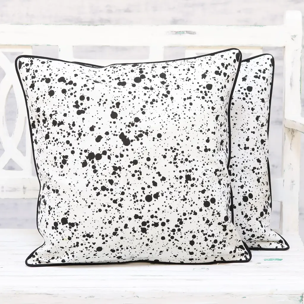 Hand-Painted Rectangular White Cushion