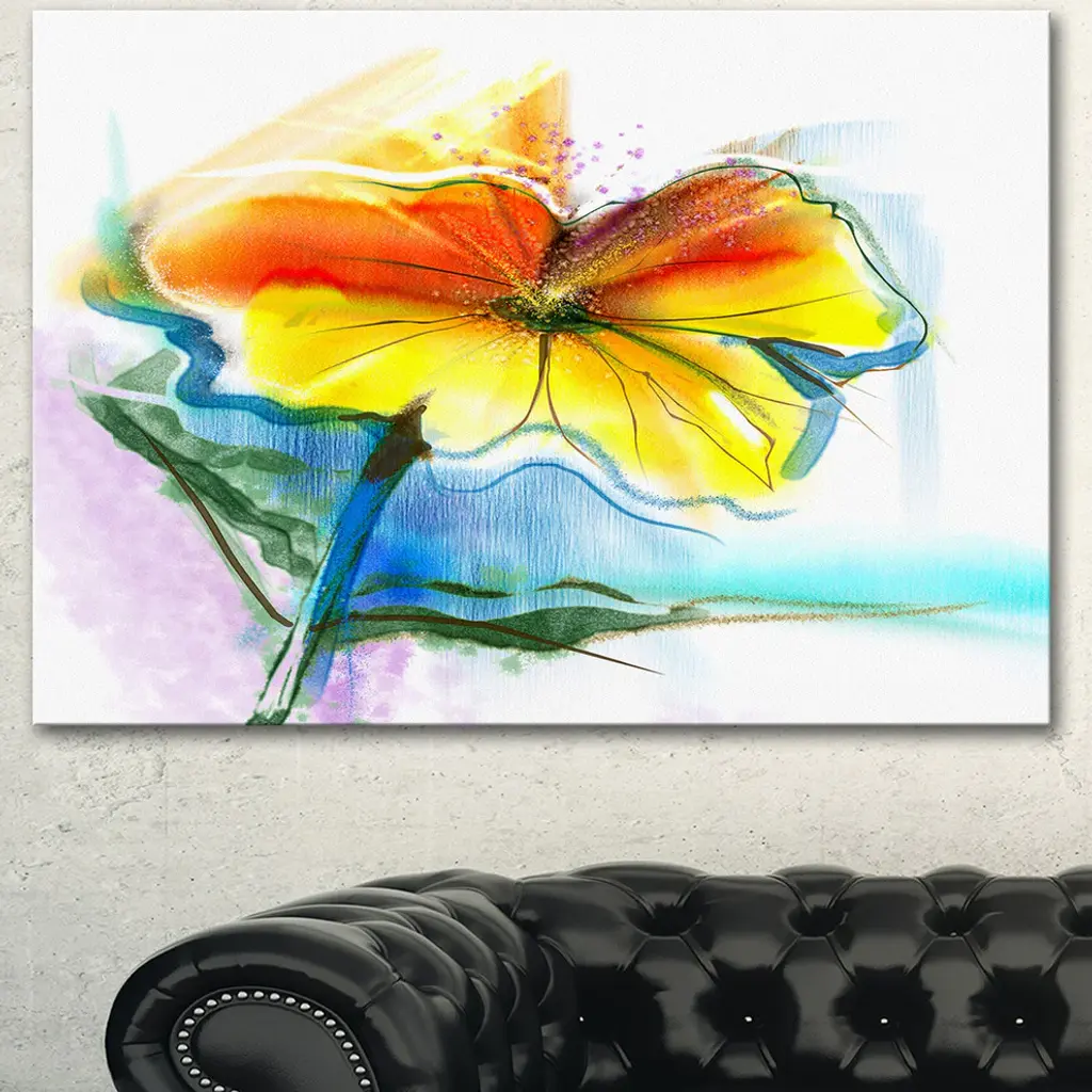 Hand Painted Yellow Pink Red Daisies, Large Floral Canvas Art Print, 60"x28"