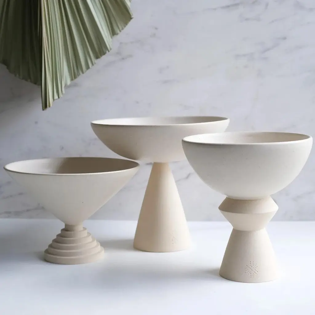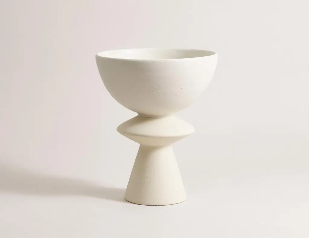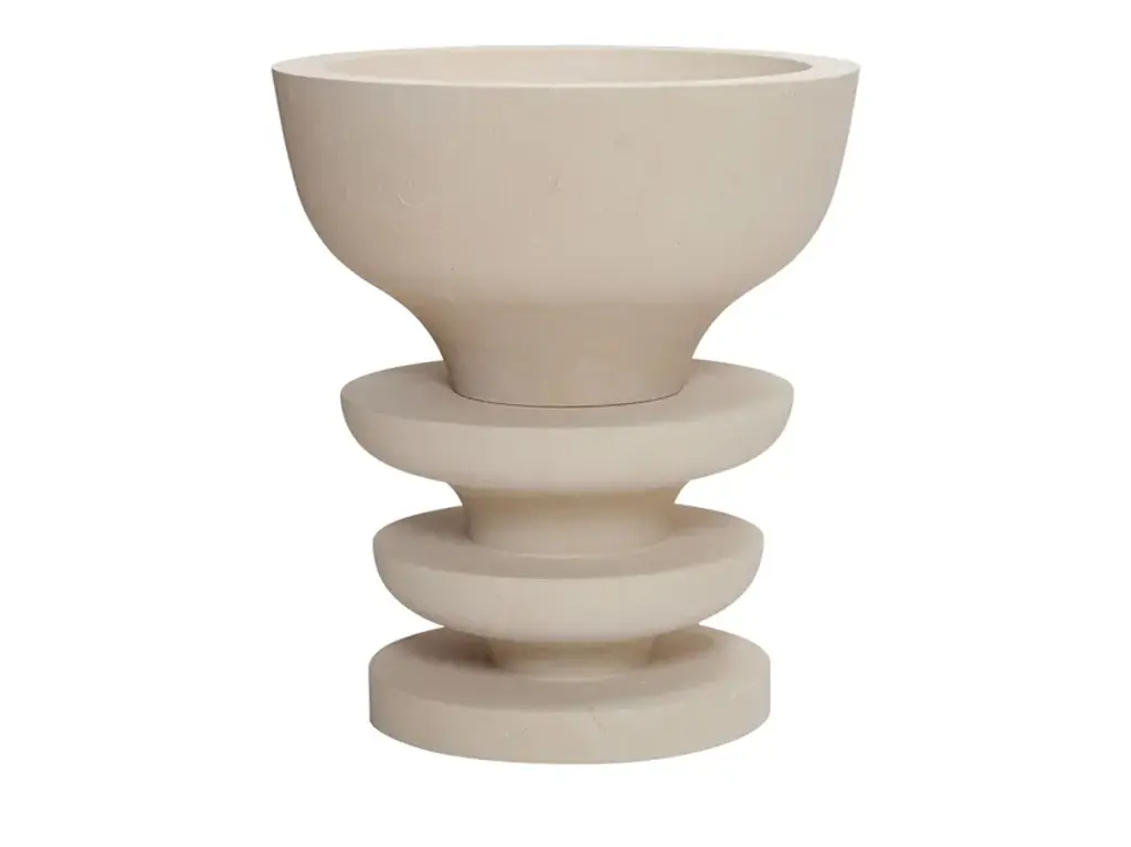Handcrafted 012 Coupe by LovebuchDimensions: Ø 21 x H 26 cmMaterials: Sandstone, handcrafted pieceKatia works with wood and clay, these raw, powerfully expressive materials are shaped to create a poetry of objects that inhabit our daily lives. Sculptural ceramics are also functional, they are made of stoneware modeled and turned in an artisanal way. Cooking them at 1250 ° C gives them resistance and permanence that has become rare.In the Lovebuch series (2015-2019) extracts from trees chosen from the Jurassian forest are cut, dried and polished at length. Their Primitive, massive and organic presence is adorned with delicate paintings around a heart that has grown over time.