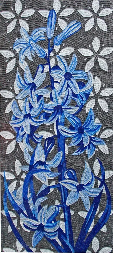 Handcut Mosaic - White Flowers - 80cm X 130cm (31" X 51") / Without Frame