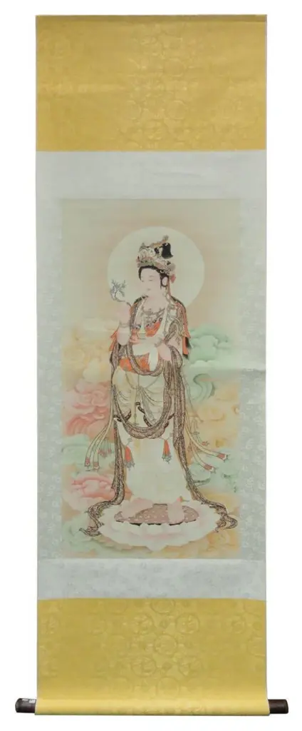 Handpainted Kwan Yin Bodhisattva Watercolor Scroll Painting Hcs1469