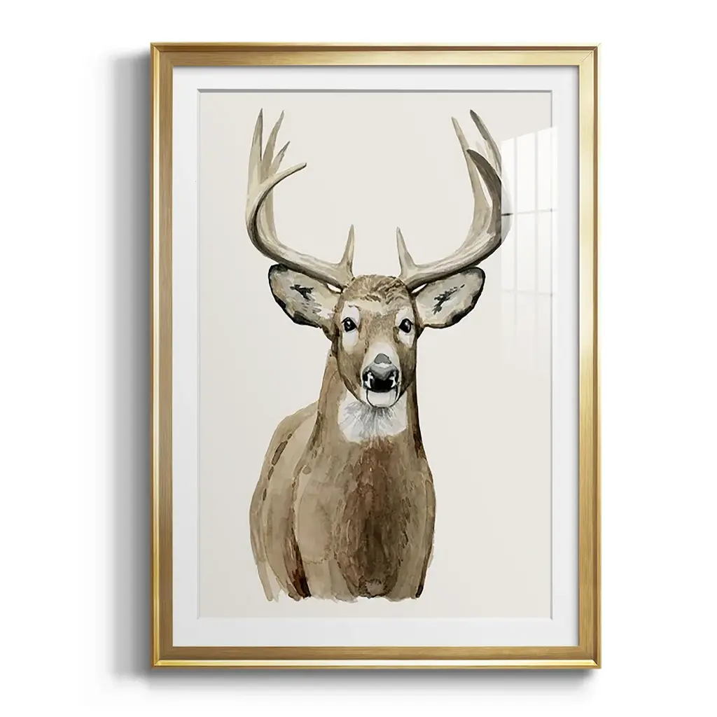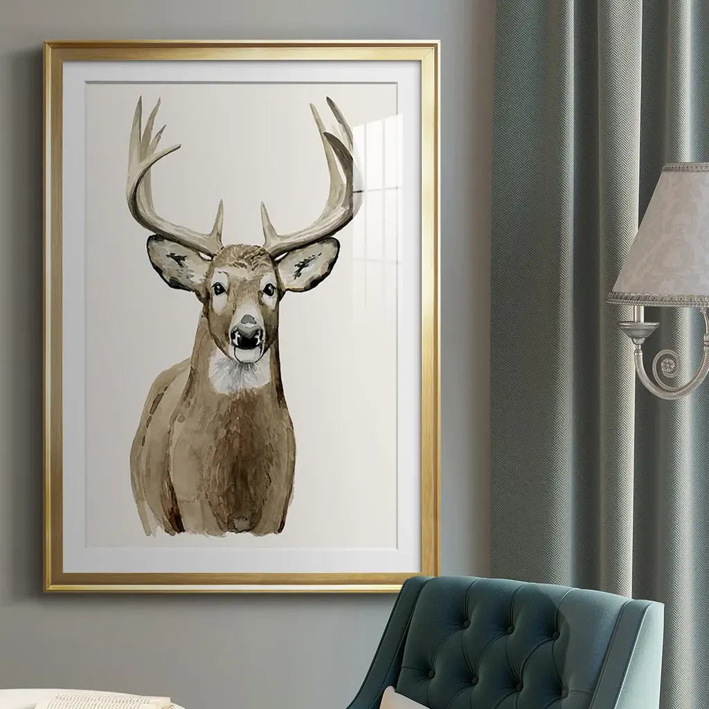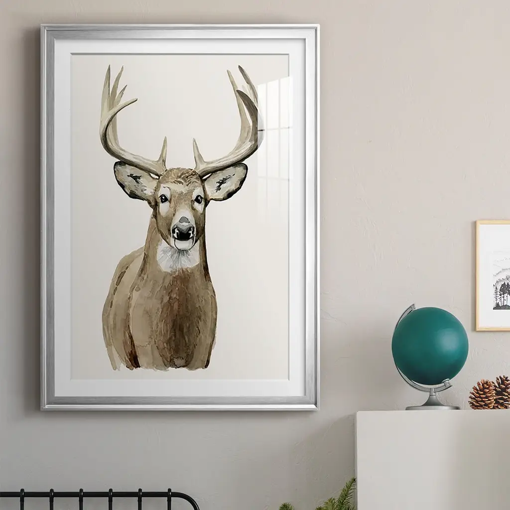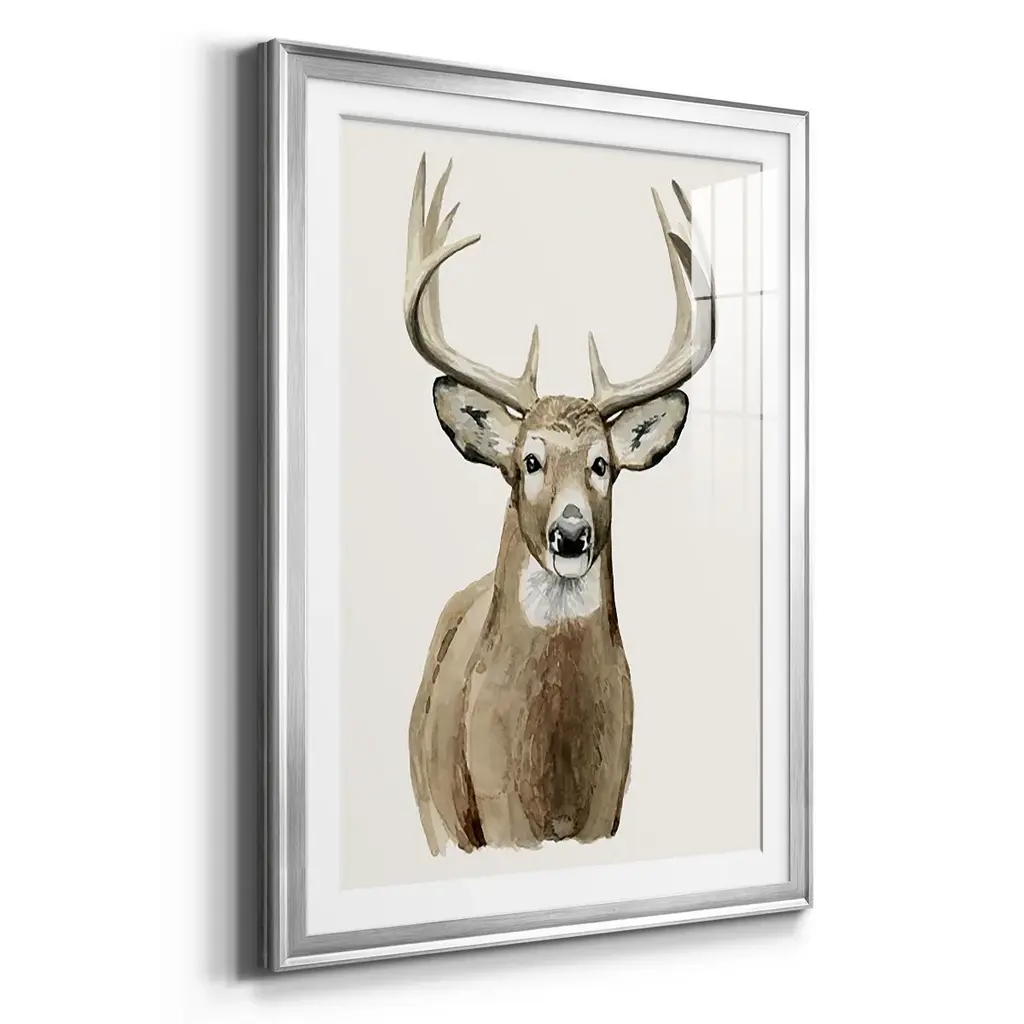 Handsome Whitetail II Premium Framed Print - Ready to Hang A Premium Framed Print created to last. Framed in distressed wood and available in an array of sizes and colors Featuring a beveled a solid wood stretcher bar, each piece comes ready to hand 4 SIZES AVAILABLE 30.5''X42.5'' - Overall Size 26.5'X36.5'' - Overall Size 22.5''x30.5'' - Overall Size 18.5''x24.5'' - Overall Size Each piece is made to order. Each piece comes with hanging hardware. Made in the USA Ready to Hang Giclee Paper Print Acrylic Glass Beveled Matt Board
