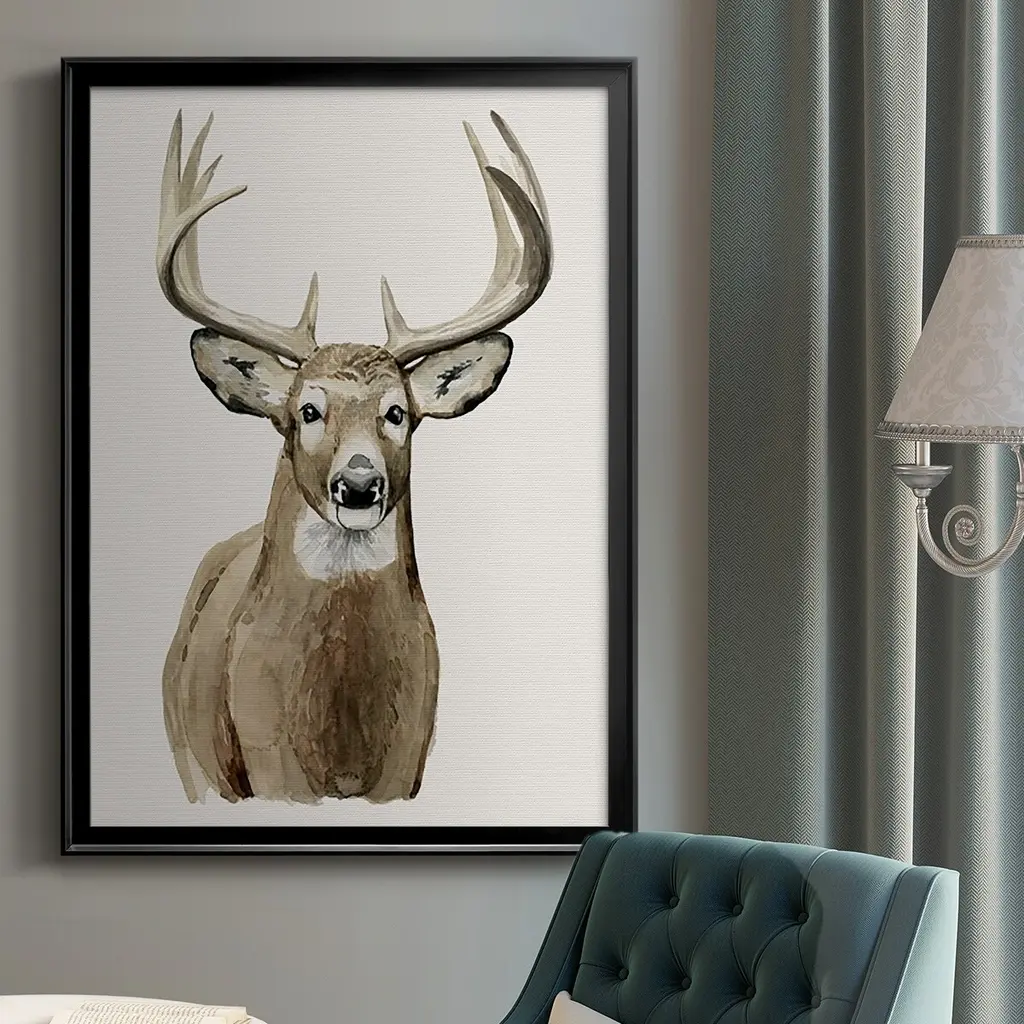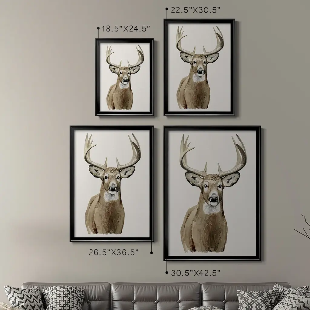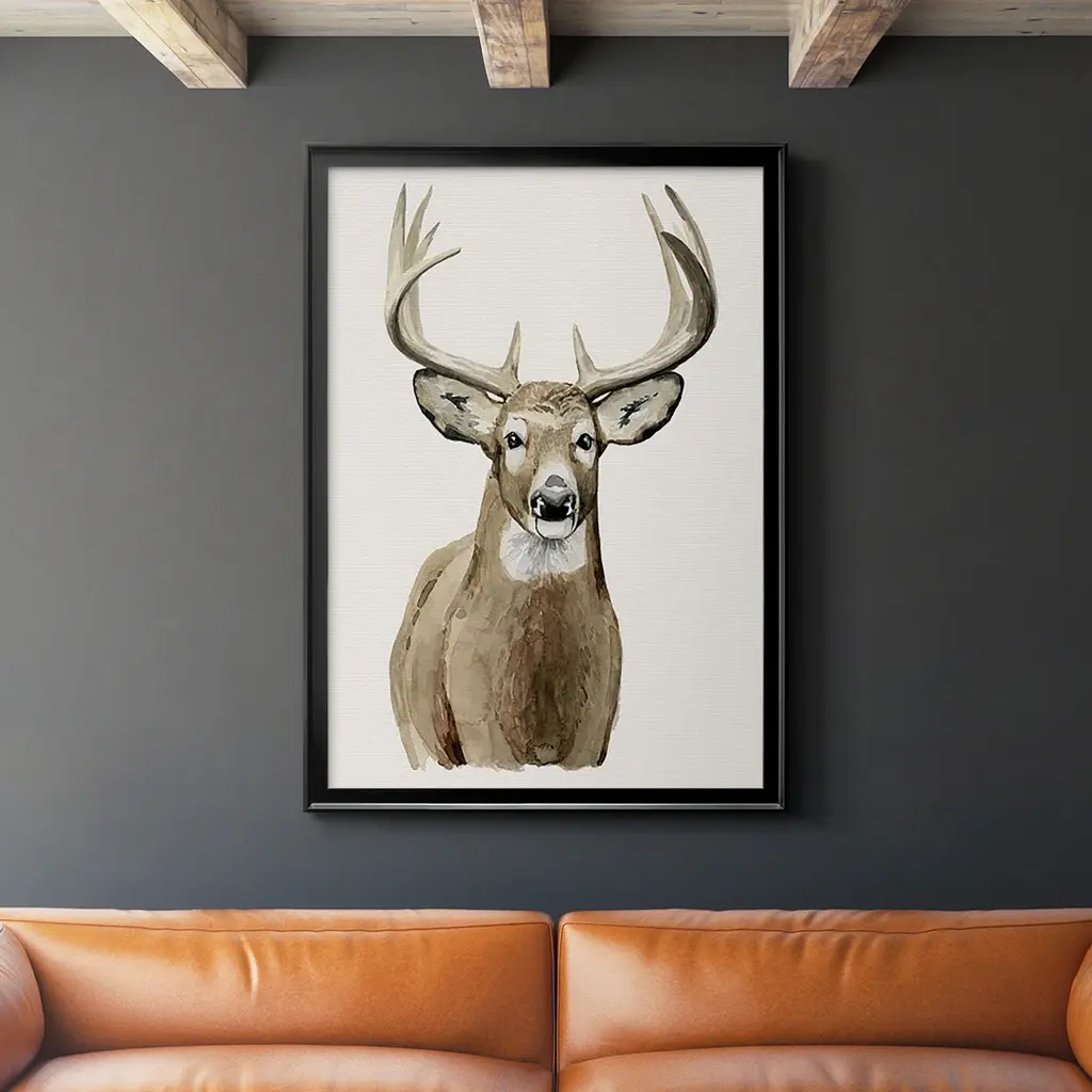 Handsome Whitetail II Premium Framed Print - Ready to Hang A Premium Framed Print created to last. Framed in distressed wood and available in an array of sizes and colors Featuring a beveled a solid wood stretcher bar, each piece comes ready to hand 4 SIZES AVAILABLE 30.5''X42.5'' - Overall Size 26.5'X36.5'' - Overall Size 22.5''x30.5'' - Overall Size 18.5''x24.5'' - Overall Size Each piece is made to order. Each piece comes with hanging hardware. Made in the USA Ready to Hang