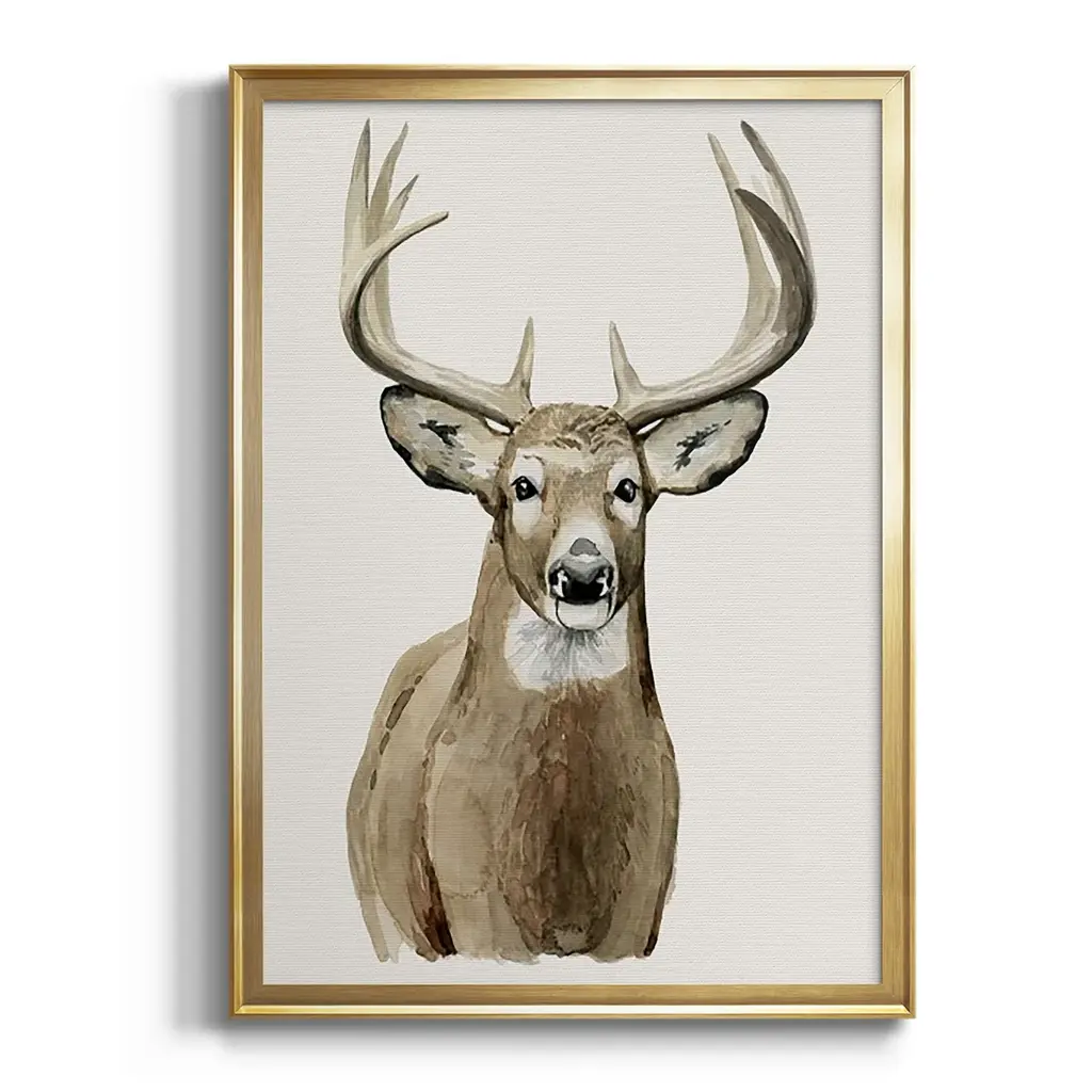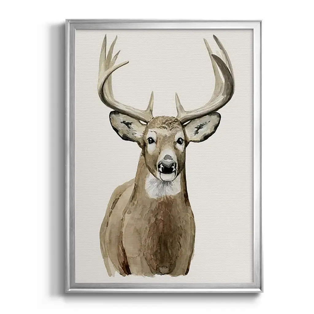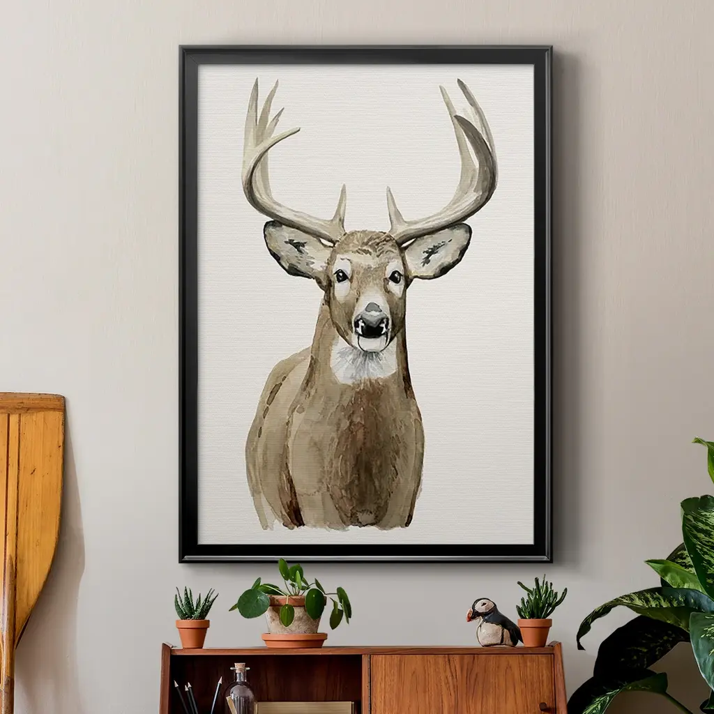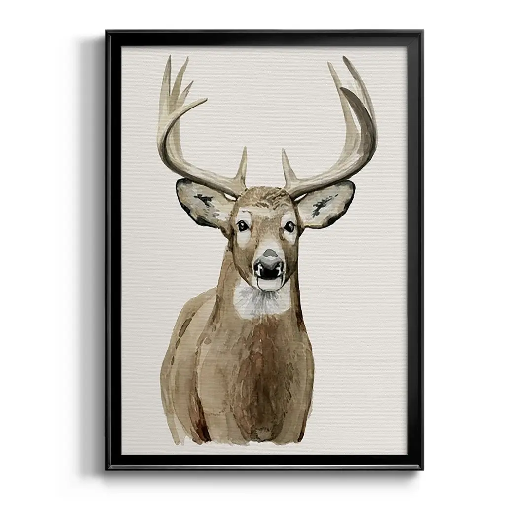 Handsome Whitetail II Premium Framed Print - Ready to Hang A Premium Framed Print created to last. Framed in distressed wood and available in an array of sizes and colors Featuring a beveled a solid wood stretcher bar, each piece comes ready to hand 4 SIZES AVAILABLE 30.5''X42.5'' - Overall Size 26.5'X36.5'' - Overall Size 22.5''x30.5'' - Overall Size 18.5''x24.5'' - Overall Size Each piece is made to order. Each piece comes with hanging hardware. Made in the USA Ready to Hang