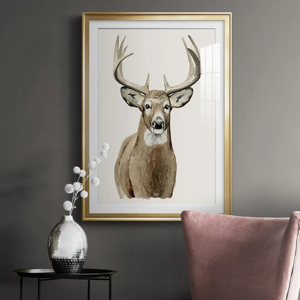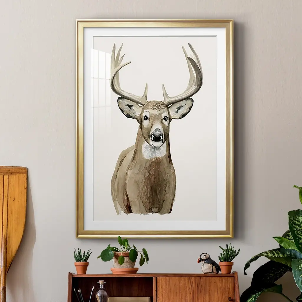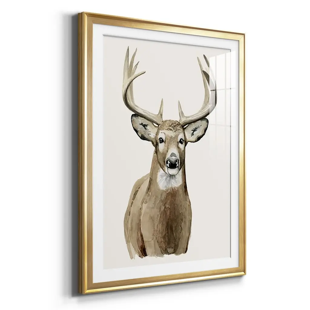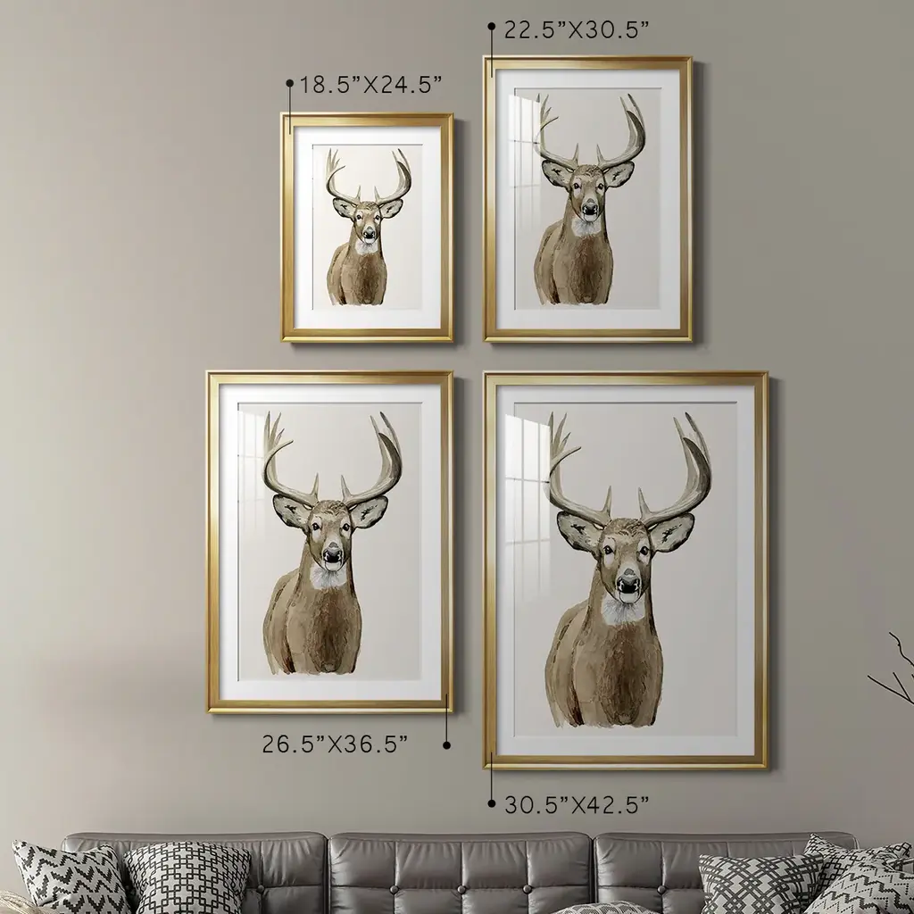 Handsome Whitetail II Premium Framed Print - Ready to Hang A Premium Framed Print created to last. Framed in distressed wood and available in an array of sizes and colors Featuring a beveled a solid wood stretcher bar, each piece comes ready to hand 4 SIZES AVAILABLE 30.5''X42.5'' - Overall Size 26.5'X36.5'' - Overall Size 22.5''x30.5'' - Overall Size 18.5''x24.5'' - Overall Size Each piece is made to order. Each piece comes with hanging hardware. Made in the USA Ready to Hang Giclee Paper Print Acrylic Glass Beveled Matt Board