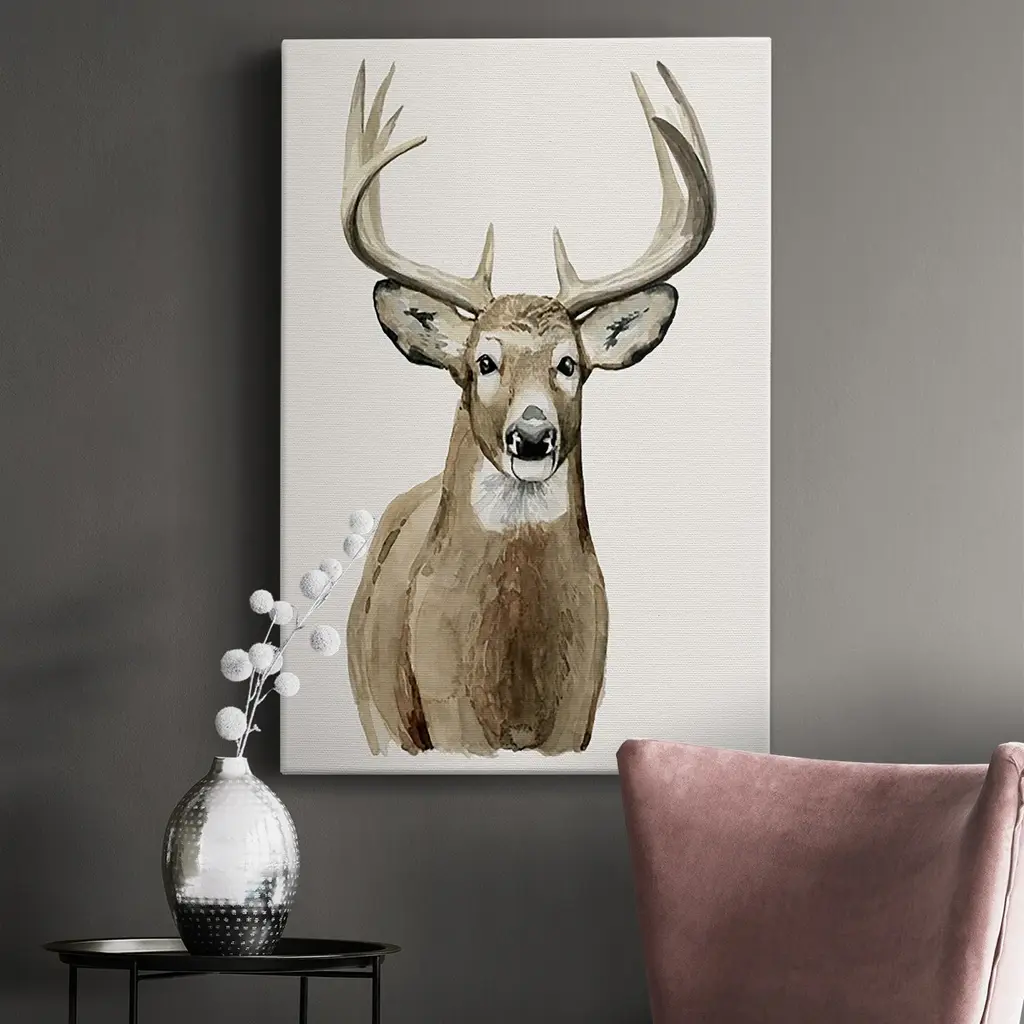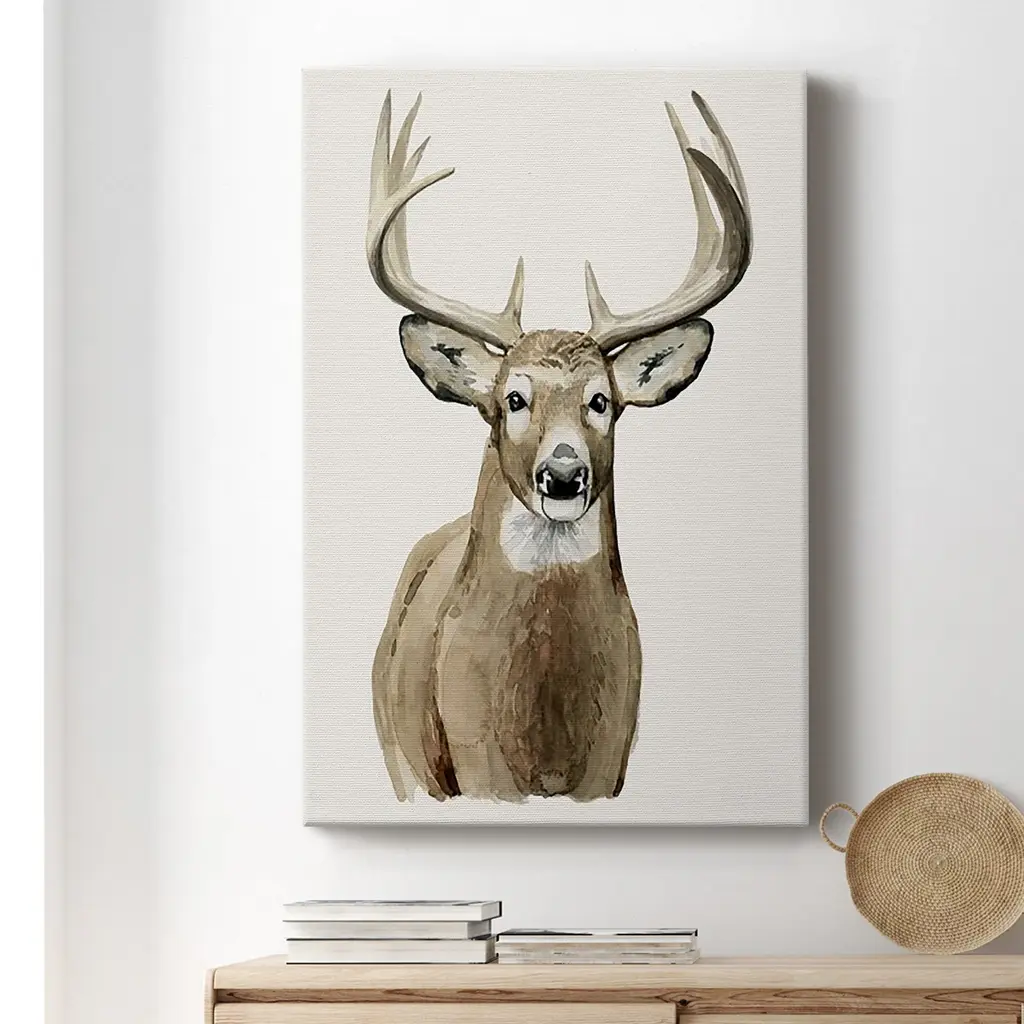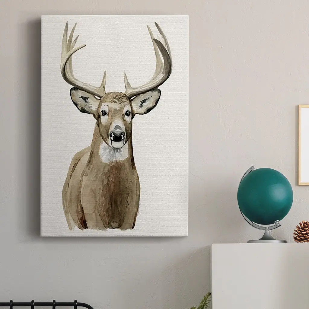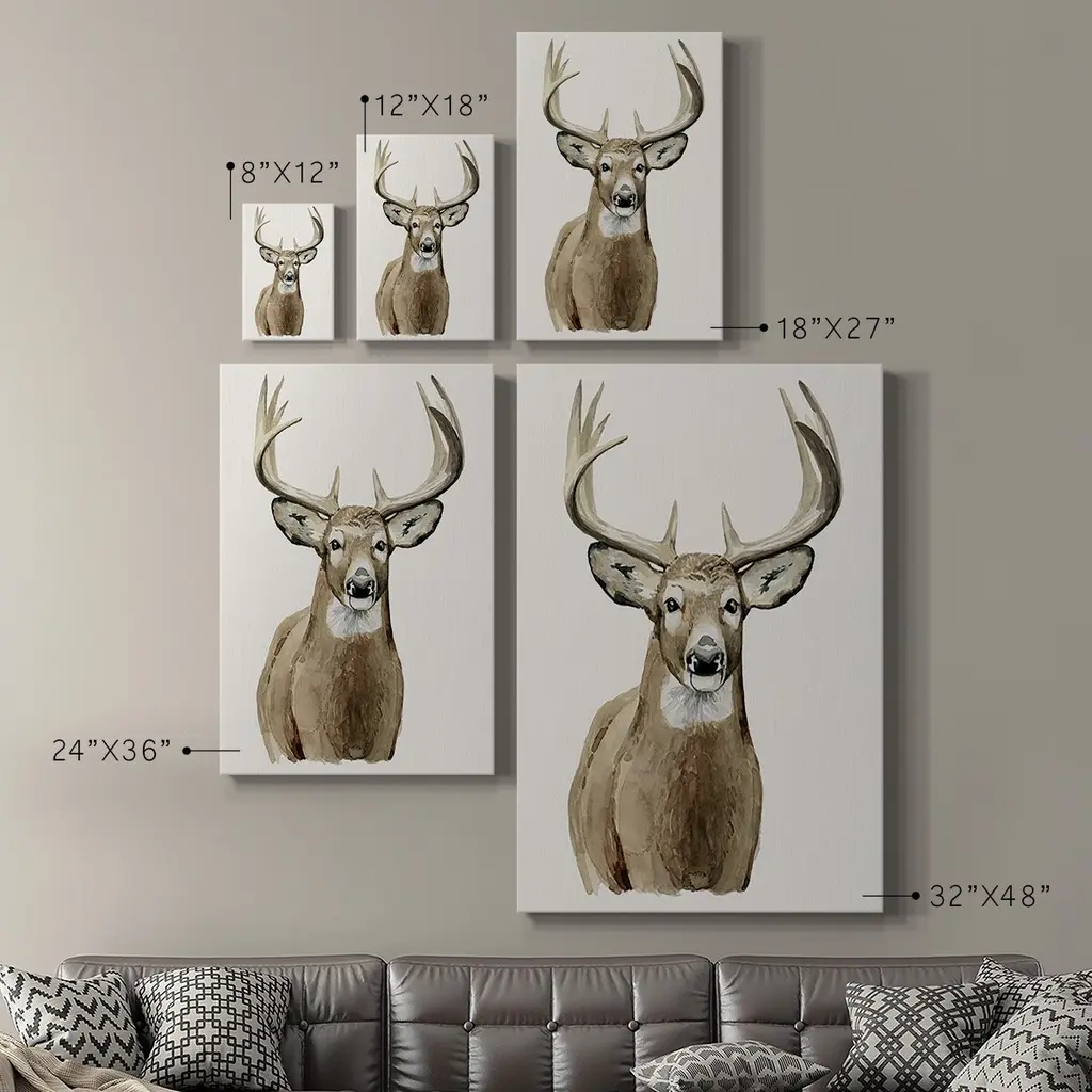 Handsome Whitetail II Premium Gallery Wrapped Canvas - Ready to Hang A premium hand stretched gallery wrapped canvas print created to last. Featuring a beveled a solid wood stretcher bar, each piece comes ready to hand 6 SIZES AVAILABLE 8''X12'' - Overall Size 12''X18'' - Overall Size 18''X27'' - Overall Size 24''x36'' - Overall Size 32''x48'' - Overall Size 40''x60'' - Overall Size Each piece is made to order. Built to Last Each piece comes ready to hang Solid wood stretcher Fade and Water resistant Made domestically