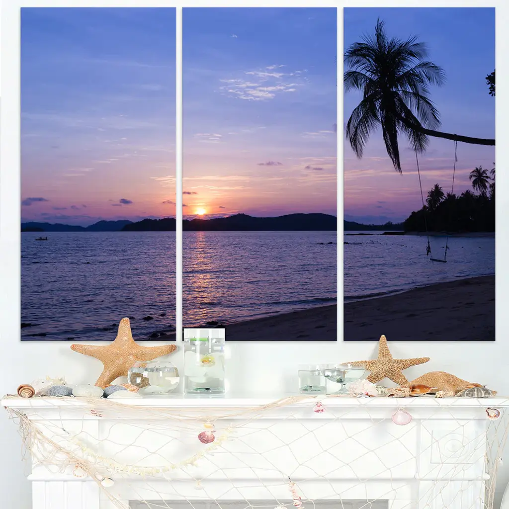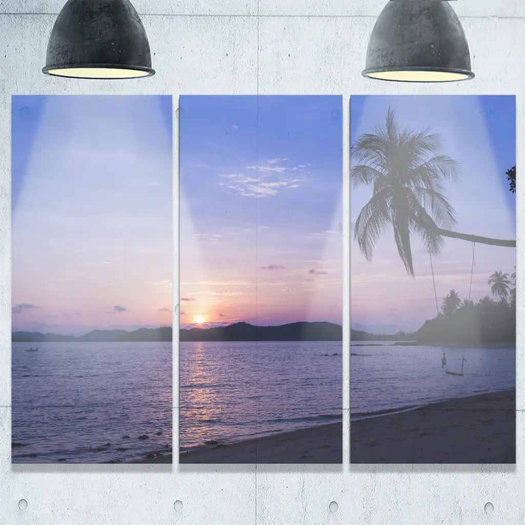 "Hanging Seat In Blue Sunset Beach" Metal Wall Art, 3 Panels, 36"x28"