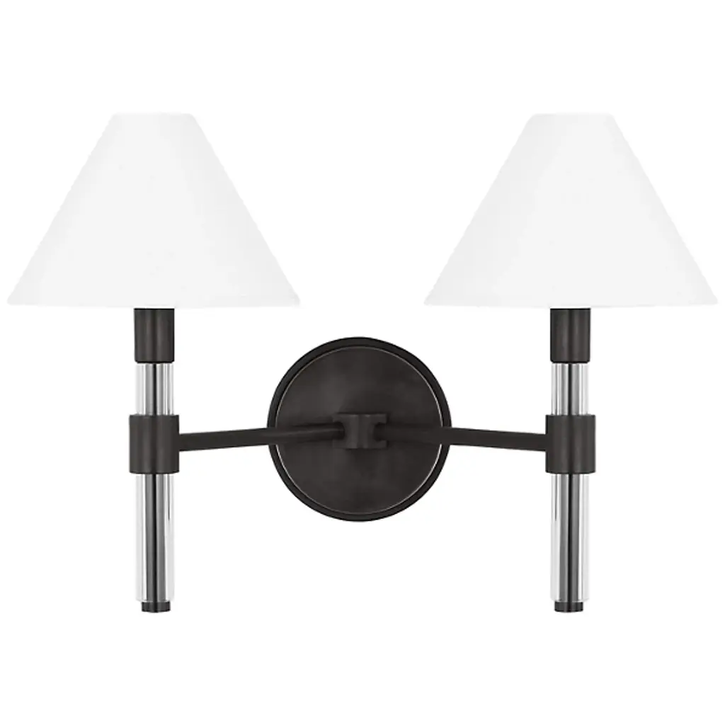 The Hanover Vanity Light from Visual Comfort Studio brings a transitional style to your living space. Tapered acrylic shades rest overtop of a linear framework of fine metal. This mid-century modern bath vanity radiates brilliant LED light throughout your room. The Hanover Vanity light is secured by a backplate on your wall, letting you complete your grooming routine with ease.