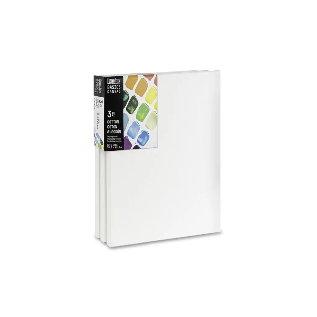 Stretched White Canvas 4 Pack includes sizes of 12x16" . Each canvas is Artists Grade, triple primed, made with 100% Cotton and premium pine wood. Perfect for acrylic, oil, and other wet or dry art media. ARTIST GRADE QUALITY: Our pre-stretched canvas is made with 100% cotton and can be used with a wide variety of artist media, from oil paints and watercolor to acrylic, tempera, and gouache