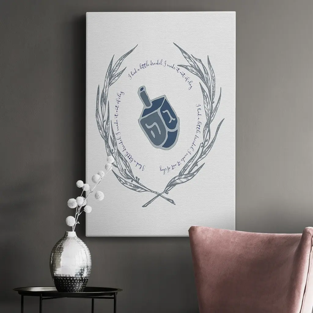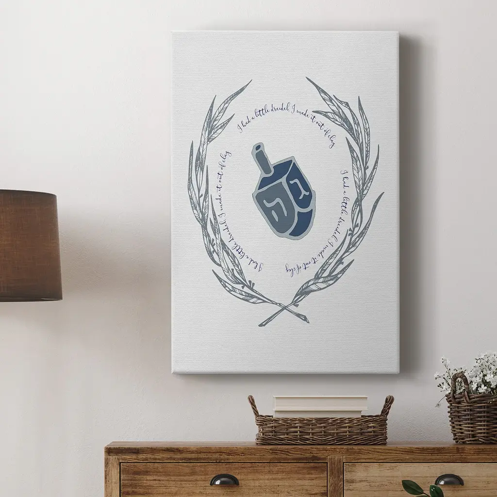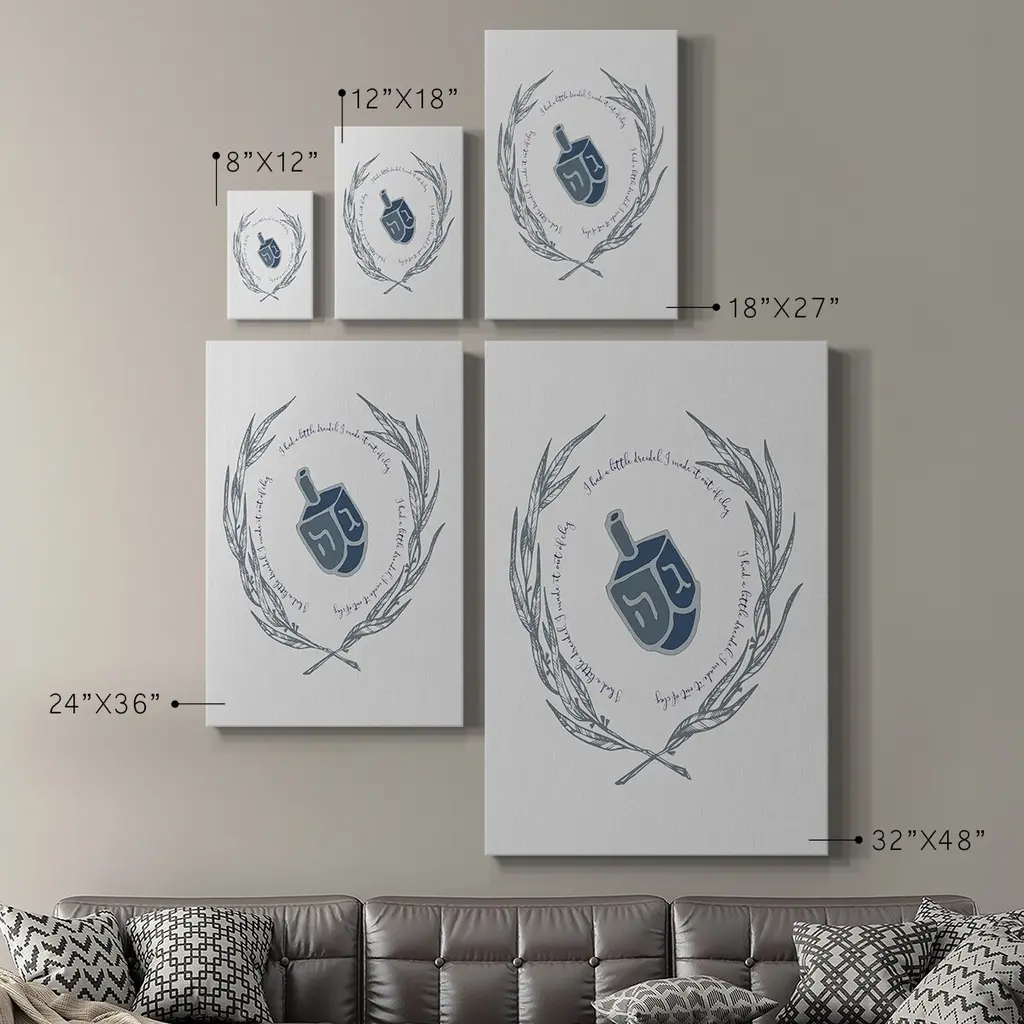 Hanukkah Dreidel Premium Gallery Wrapped Canvas - Ready to Hang A premium hand stretched gallery wrapped canvas print created to last. Featuring a beveled a solid wood stretcher bar, each piece comes ready to hand 6 SIZES AVAILABLE 8''X12'' - Overall Size 12''X18'' - Overall Size 18''X27'' - Overall Size 24''x36'' - Overall Size 32''x48'' - Overall Size 40''x60'' - Overall Size Each piece is made to order. Built to Last Each piece comes ready to hang Solid wood stretcher Fade and Water resistant Made domestically