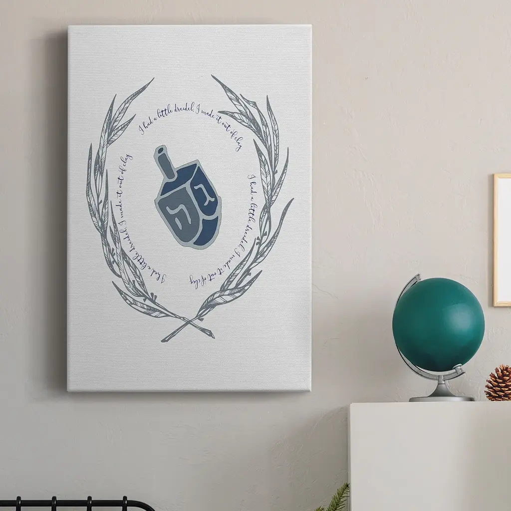 Hanukkah Dreidel Premium Gallery Wrapped Canvas - Ready to Hang A premium hand stretched gallery wrapped canvas print created to last. Featuring a beveled a solid wood stretcher bar, each piece comes ready to hand 6 SIZES AVAILABLE 8''X12'' - Overall Size 12''X18'' - Overall Size 18''X27'' - Overall Size 24''x36'' - Overall Size 32''x48'' - Overall Size 40''x60'' - Overall Size Each piece is made to order. Built to Last Each piece comes ready to hang Solid wood stretcher Fade and Water resistant Made domestically