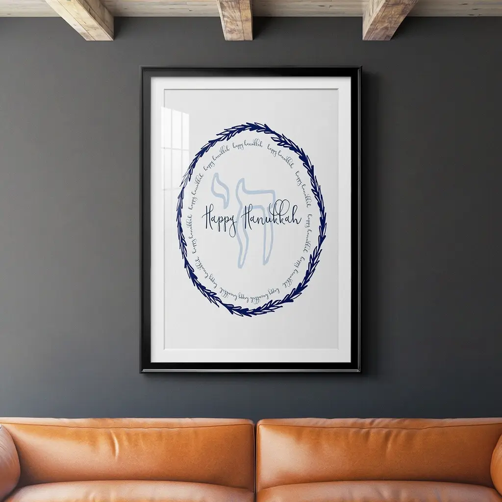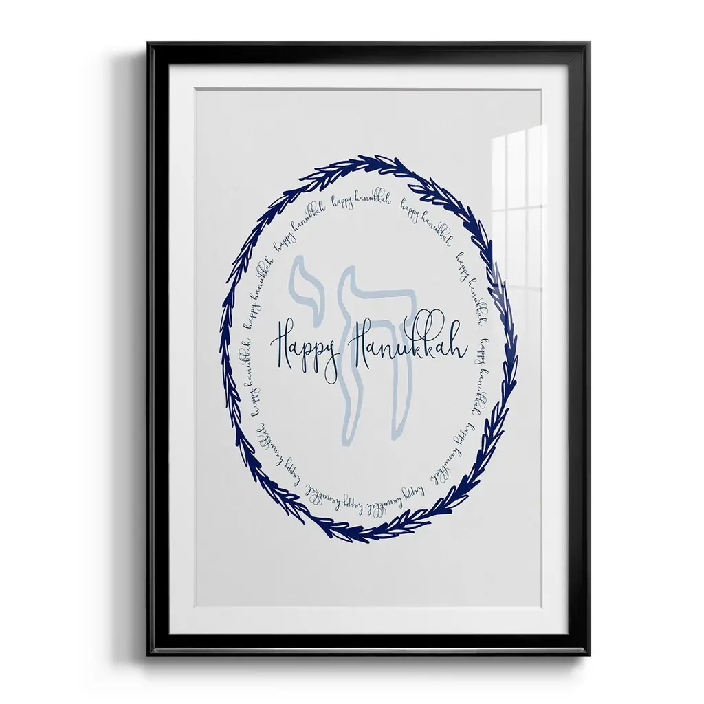 Hanukkah Go Round Premium Framed Print - Ready to Hang A Premium Framed Print created to last. Framed in distressed wood and available in an array of sizes and colors Featuring a beveled a solid wood stretcher bar, each piece comes ready to hand 4 SIZES AVAILABLE 30.5''X42.5'' - Overall Size 26.5'X36.5'' - Overall Size 22.5''x30.5'' - Overall Size 18.5''x24.5'' - Overall Size Each piece is made to order. Each piece comes with hanging hardware. Made in the USA Ready to Hang Giclee Paper Print Acrylic Glass Beveled Matt Board