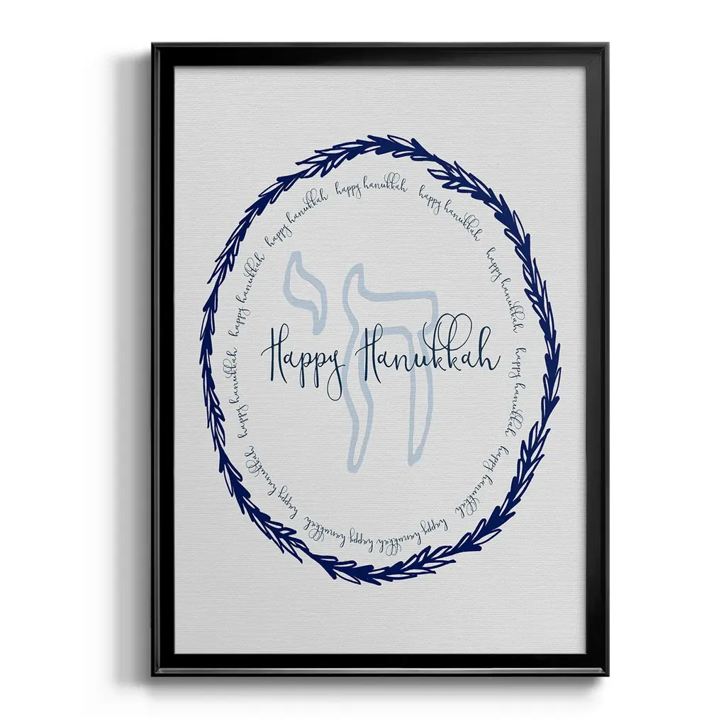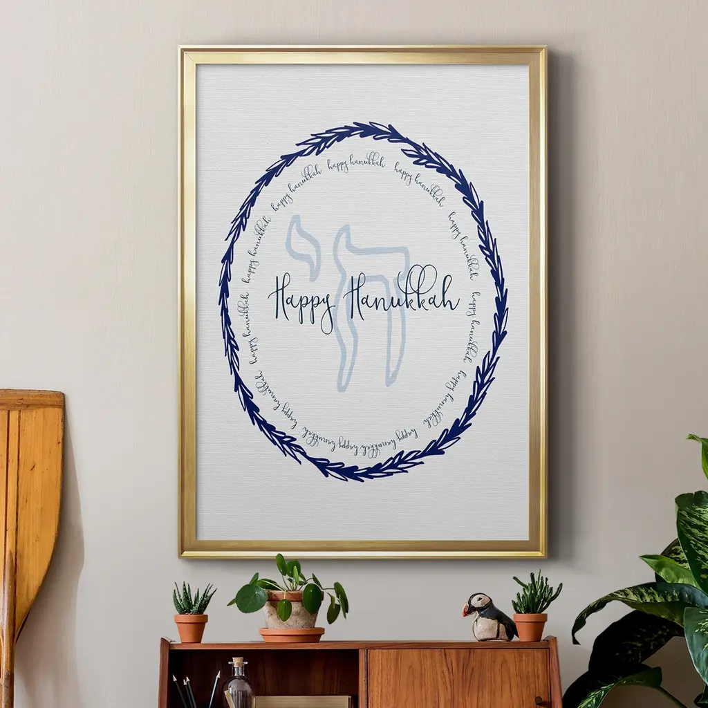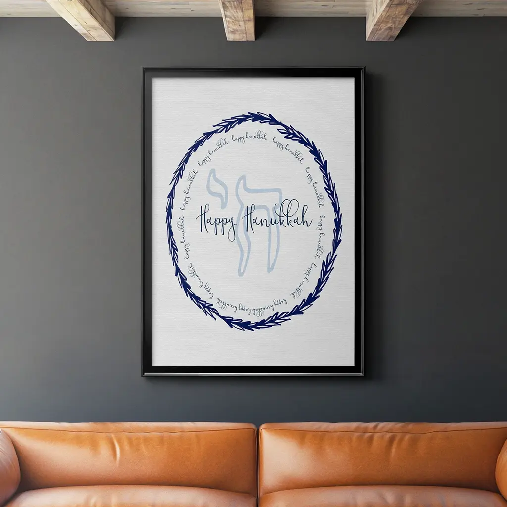 Hanukkah Go Round Premium Framed Print - Ready to Hang A Premium Framed Print created to last. Framed in distressed wood and available in an array of sizes and colors Featuring a beveled a solid wood stretcher bar, each piece comes ready to hand 4 SIZES AVAILABLE 30.5''X42.5'' - Overall Size 26.5'X36.5'' - Overall Size 22.5''x30.5'' - Overall Size 18.5''x24.5'' - Overall Size Each piece is made to order. Each piece comes with hanging hardware. Made in the USA Ready to Hang
