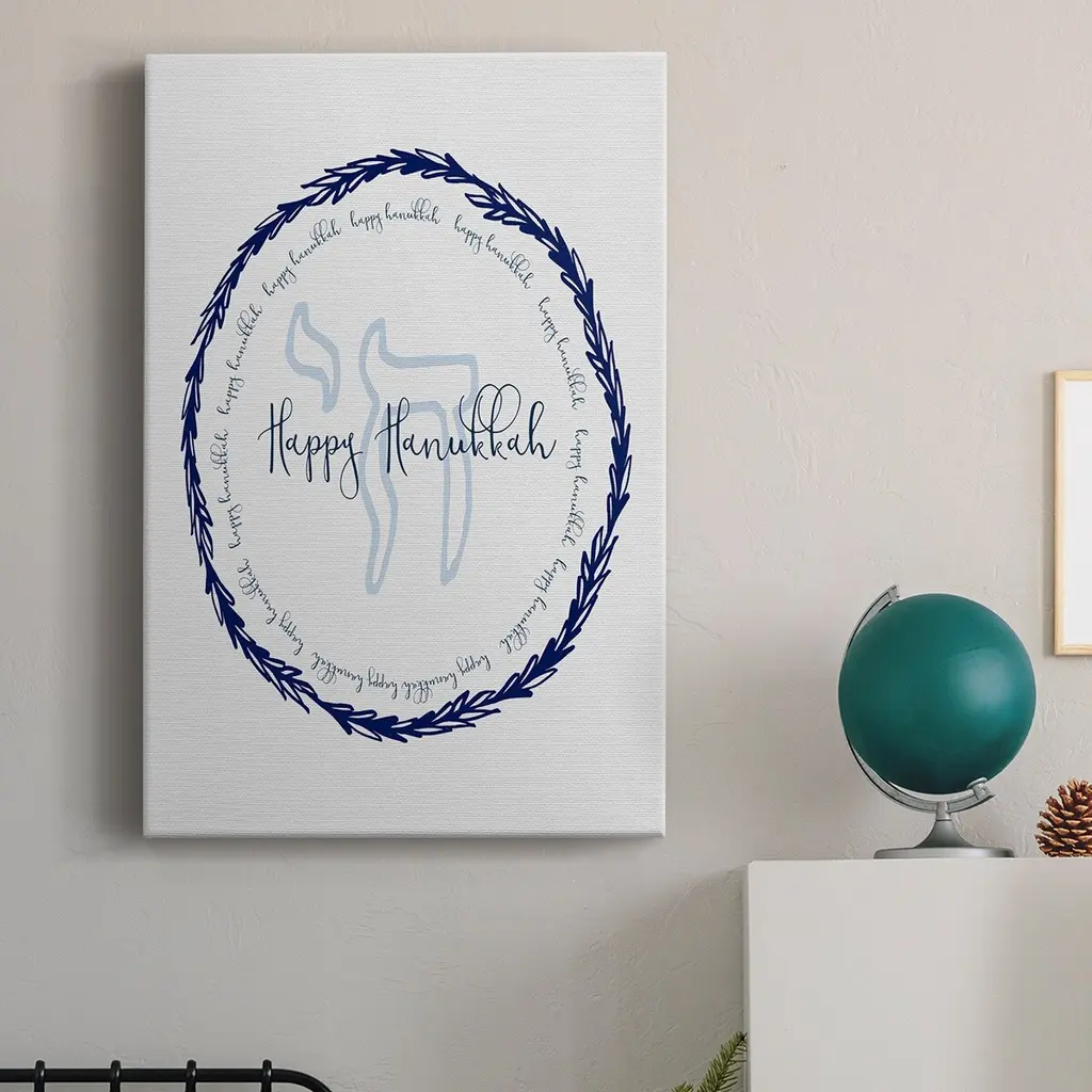 Hanukkah Go Round Premium Gallery Wrapped Canvas - Ready to Hang A premium hand stretched gallery wrapped canvas print created to last. Featuring a beveled a solid wood stretcher bar, each piece comes ready to hand 6 SIZES AVAILABLE 8''X12'' - Overall Size 12''X18'' - Overall Size 18''X27'' - Overall Size 24''x36'' - Overall Size 32''x48'' - Overall Size 40''x60'' - Overall Size Each piece is made to order. Built to Last Each piece comes ready to hang Solid wood stretcher Fade and Water resistant Made domestically