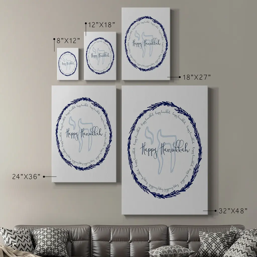Hanukkah Go Round Premium Gallery Wrapped Canvas - Ready to Hang A premium hand stretched gallery wrapped canvas print created to last. Featuring a beveled a solid wood stretcher bar, each piece comes ready to hand 6 SIZES AVAILABLE 8''X12'' - Overall Size 12''X18'' - Overall Size 18''X27'' - Overall Size 24''x36'' - Overall Size 32''x48'' - Overall Size 40''x60'' - Overall Size Each piece is made to order. Built to Last Each piece comes ready to hang Solid wood stretcher Fade and Water resistant Made domestically