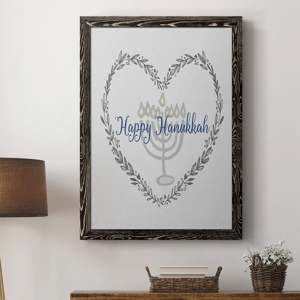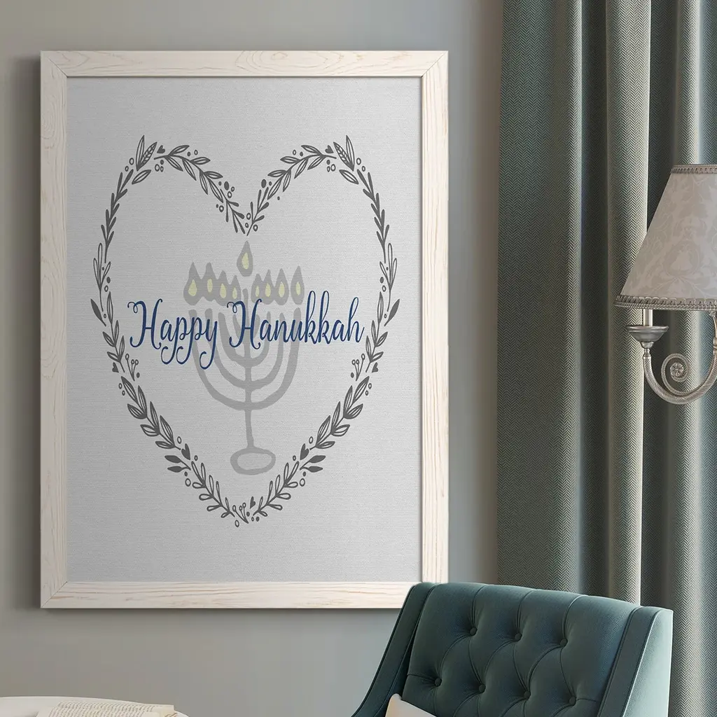 Hanukkah Heart-Premium Framed Canvas - Ready To Hang - 31.5x43.5 - Grey