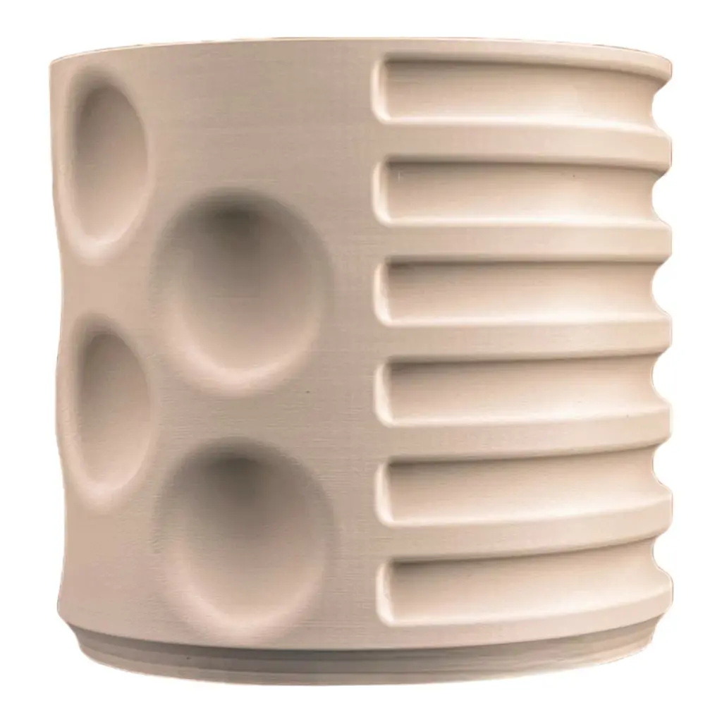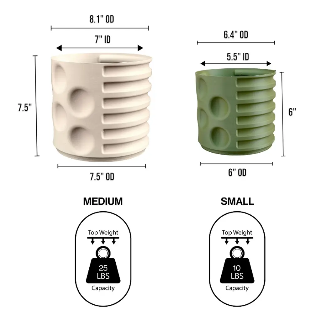 Inspired by mid-century brutalist pottery, our custom designed 3D-printed planters add a modern touch to your home or office. This two-color set includes a medium and small planter with a contrasting geometric design. Made from plant-based plastic, these planters are both plant safe and perfect for small to medium sized houseplants like succulents, snake plants, pothos, and many more!