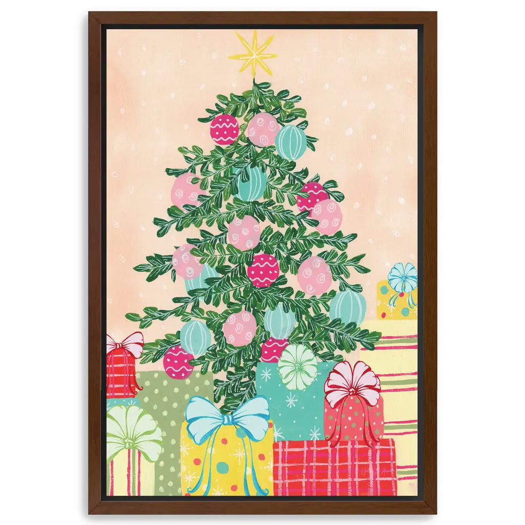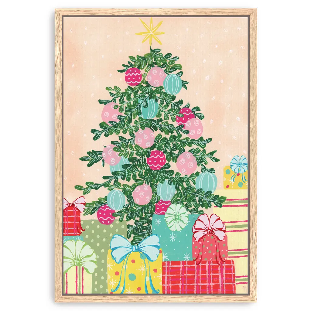 Happy Christmas Tree Canvas Giclee - Framed / Black / 16x24