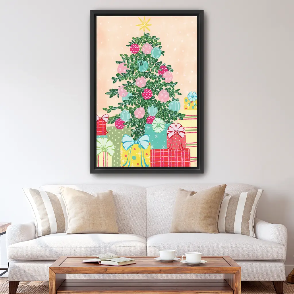 Happy Christmas Tree Canvas Giclee - Framed / Dark Walnut / 24x36