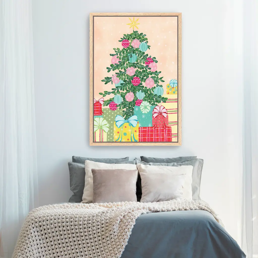 Happy Christmas Tree Canvas Giclee - Framed / Oak / 32x48