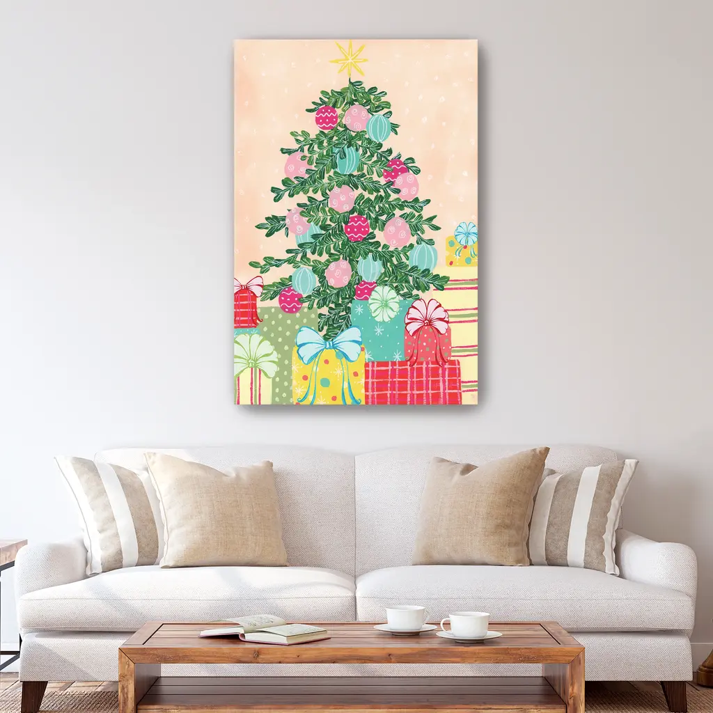 Infuse your home with holiday cheer through this beautifully crafted canvas print. Its festive palette and whimsical design make it a standout piece for Christmas decorating, year after year. Our Gallery Wrap Canvas Prints are proudly assembled with high quality materials in California, USA. Each piece is printed on a thick, archival grade canvas using Giclee technology. It is then hand-stretched by our experienced artisans over solid wood bars, which will not warp over time. The final product is a piece personally crafted for you to confidently display on your wall. Care and Assembly: Ensure that the location of your piece has little to no exposure to heat, sunlight, and moisture. Wipe clean, only if needed. Each piece includes hanging hardware to hang on your wall vertically.